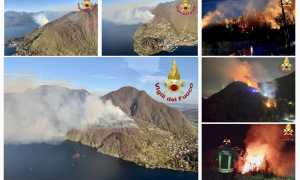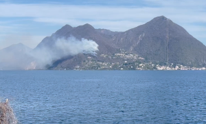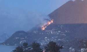 Vasto incendio nei boschi sopra Laveno: la lingua di fuoco visibile dal Verbano