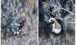 Cane in difficolta in una zona molto impervia, il segugio francese salvato dai Vvf