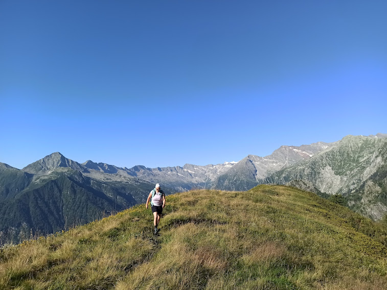 ANTRONA- 31-10-2021-- Il Pizzo Ciapè è una meta forse più conosciuta per l’impegnativa salita sci-alpinistica dagli alpeggi di Cama che per le escursioni estive. L’intero versante occidentale della montagna, verso Cheggio, è poco frequentato: ruderi di alpeggi e sentieri quasi abbandonati. Eravamo stati da queste parti sedici anni fa. Oltre ai sentieri, allora, erano in condizioni migliori anche le nostre anziane gambe. Un’altra gita avventurosa fuori dai percorsi battuti dagli escursionisti di agosto.