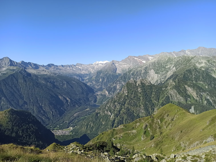 Siamo quasi imbarazzati dal poter camminare rilassati e vedendo dove mettiamo i piedi. Teniamo la destra (ovest) e raggiungiamo i ruderi degli Alpi di Ro Superiori. Risaliamo per meno di cento metri e chiudiamo l’anello odierno a Cavallo di Ro (poco più di un’ora dalla pausa pranzo). Un’ora di tranquilla discesa ci riporta a Cheggio. Una birra fresca al Rifugio Città di Novara chiude in bellezza la faticosa e calda giornata.