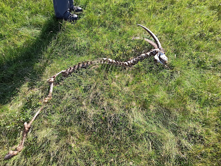 Ora siamo su tracce o presunte tali. Né le cartine né i sentieri sono più quelli di una volta. Poco più in alto ci concediamo una breve pausa. Sempre diretti ad oriente continuiamo ad attraversare verdi prati in dolce ascesa fino ad arrivare in prossimità del Passo del Forneto. Qui viriamo gradatamente a sud e ci abbassiamo di qualche decina di metri lungo un tratto di sentiero ripido e impervio, ma non esposto come l’antipatico traverso dopo Cavallo di Ro. Dall’alto ci osservano degli stambecchi, che un esperto cacciatore battezza subito “capre” (ma ci arriviamo anche noi) al suono dei loro campanacci. Cerchiamo di tenerci alti, sempre navigando a vista, fino a che non incrociamo una vaga traccia, che dovrebbe essere il sentiero C20.