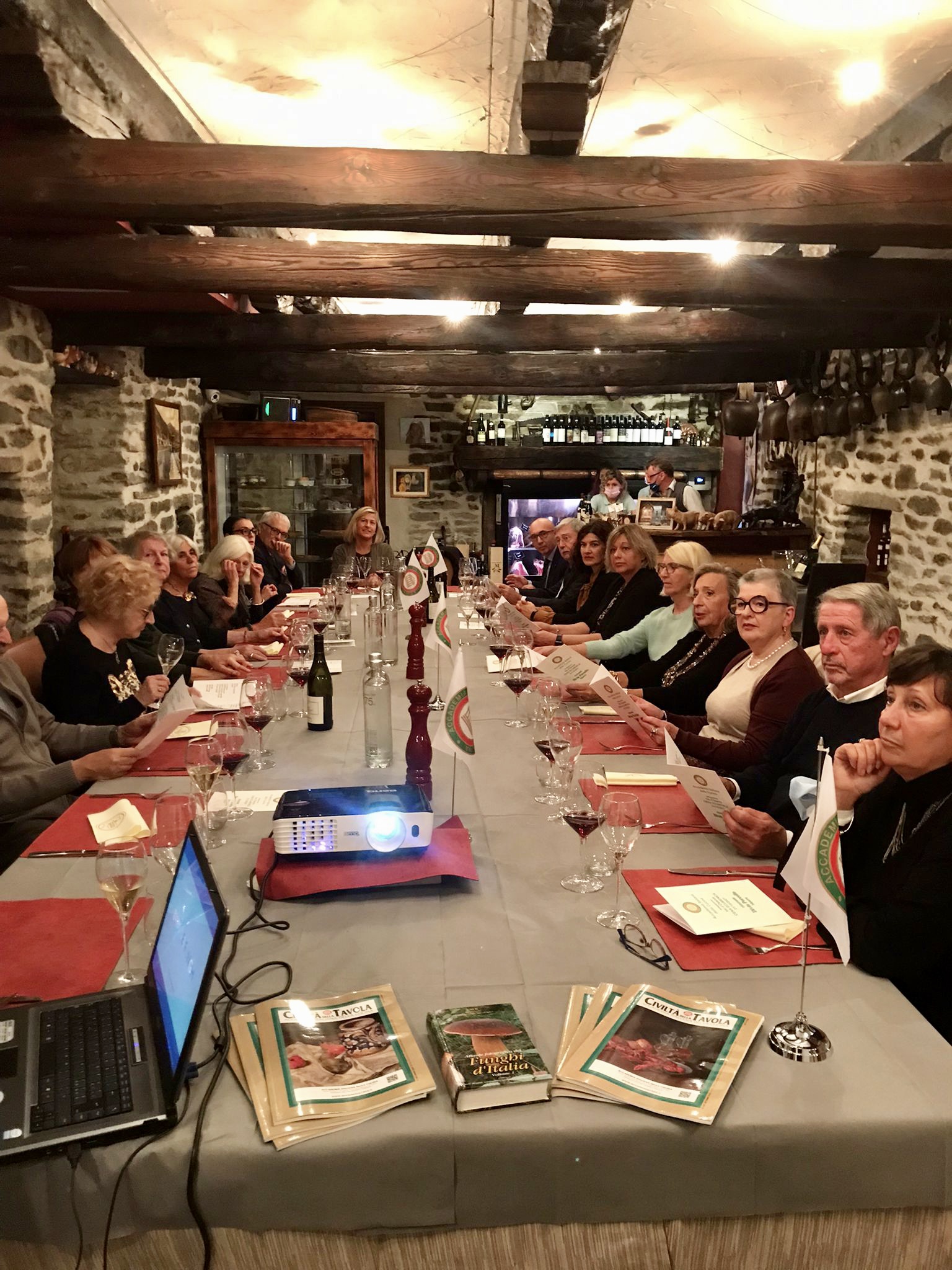 Tutti i funghi della serata sono stati certificati dal micologo Dimitri Gioffi, che ha illustrato, proiettando immagini, le caratteristiche dei vari miceti degustati, rispondendo alle attende domande dei partecipanti.