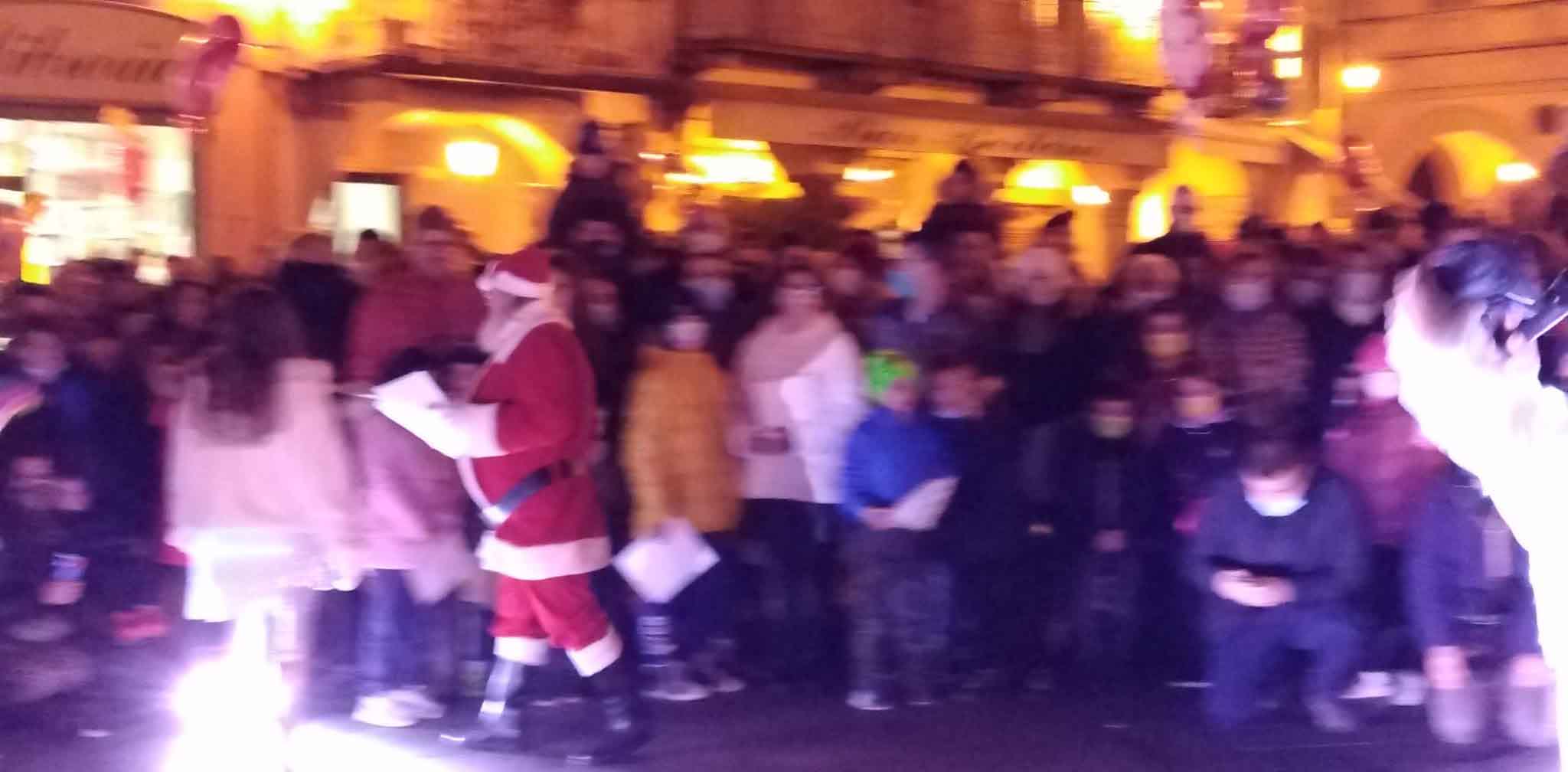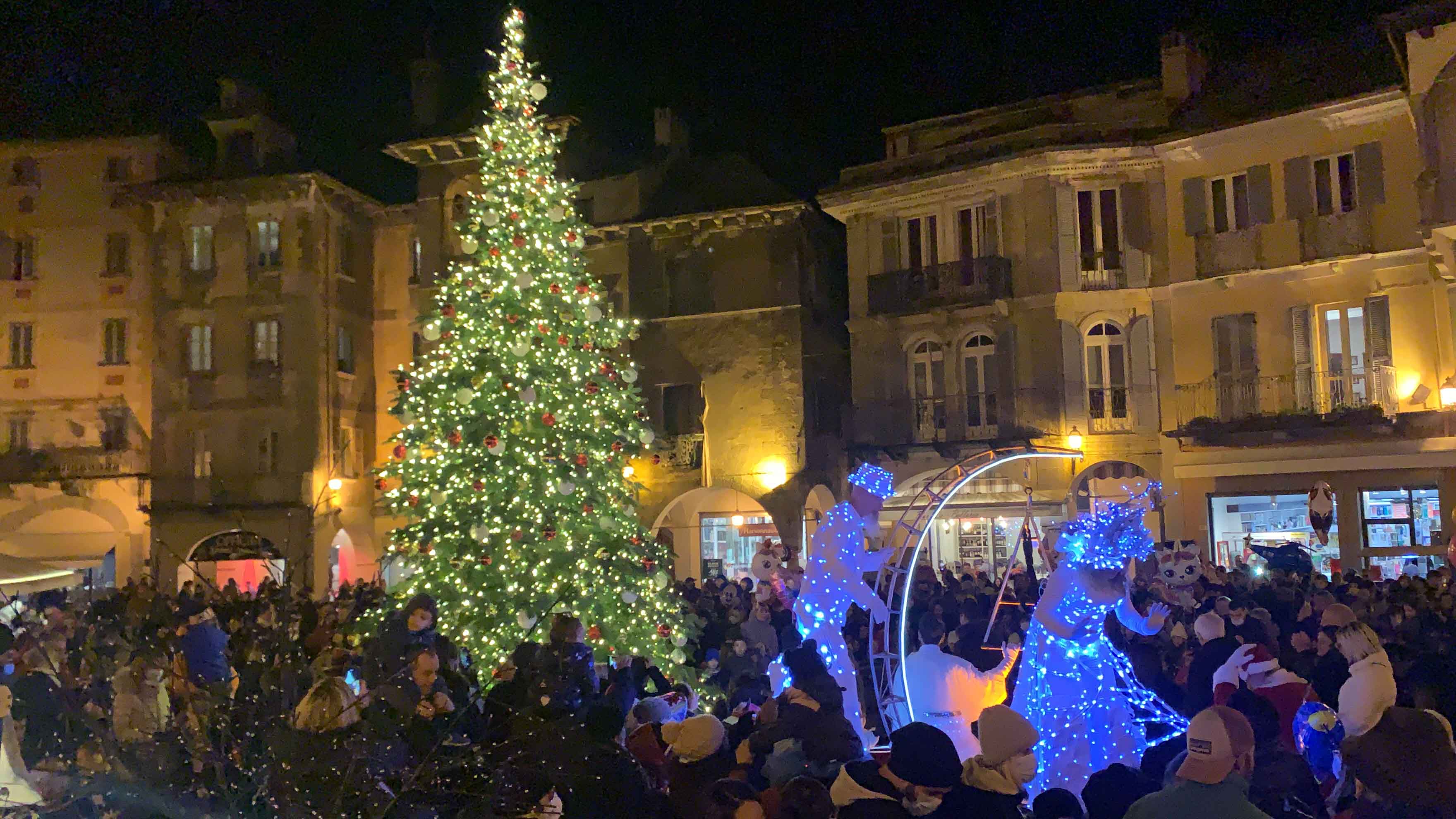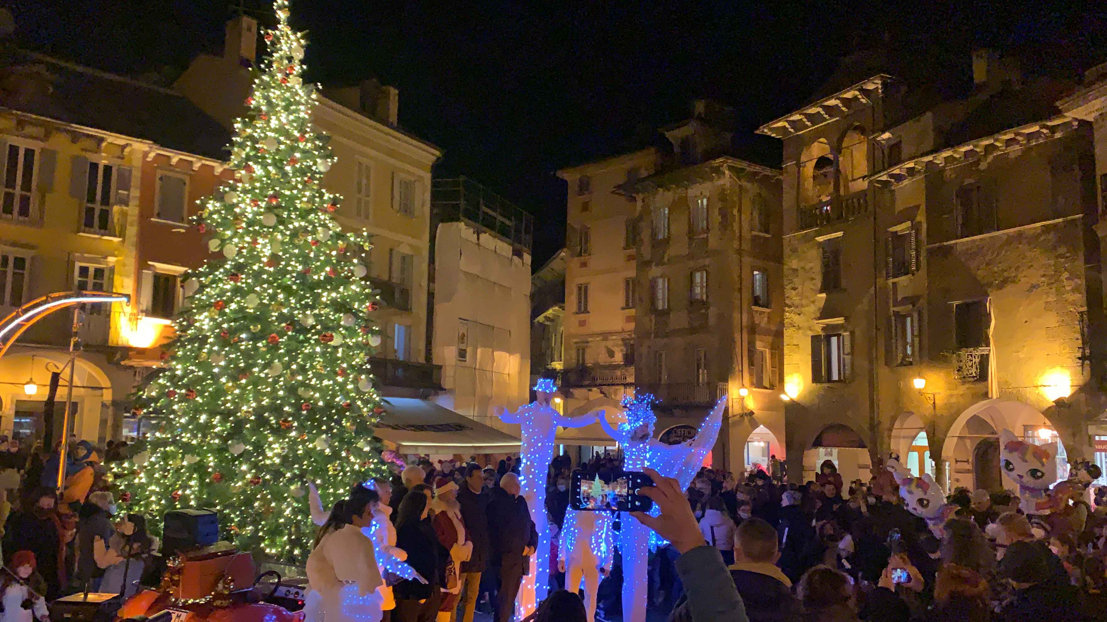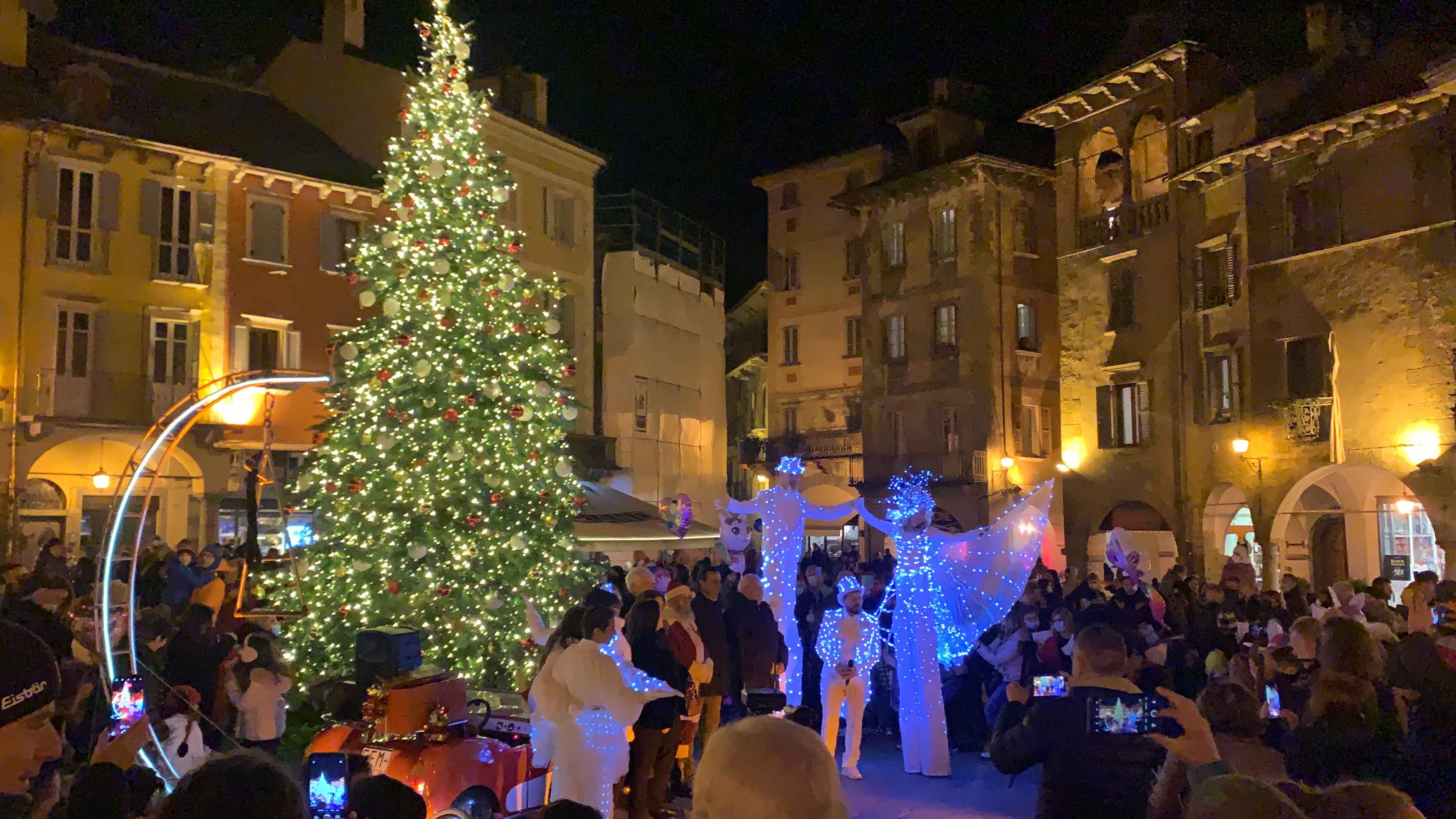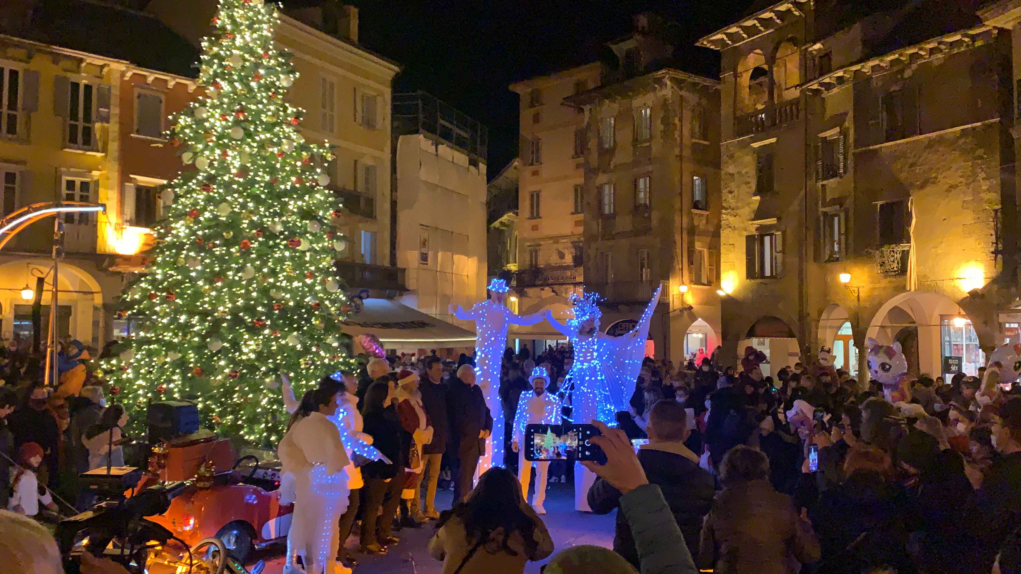 DOMODOSSOLA- 27-11-2021-- Davanti ad una piazza gremita e festante si sono accese questa sera le scintillanti luci dell'albero di Natale allestito in Piazza Mercato, alla presenza di grandi e piccini.