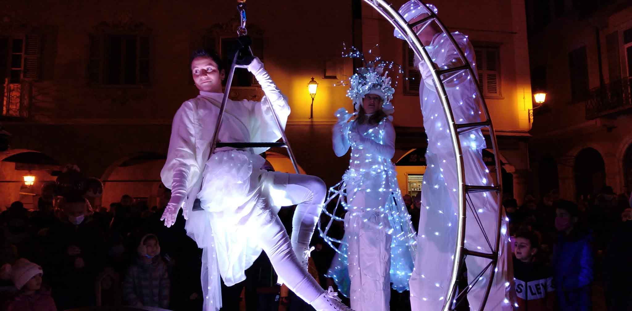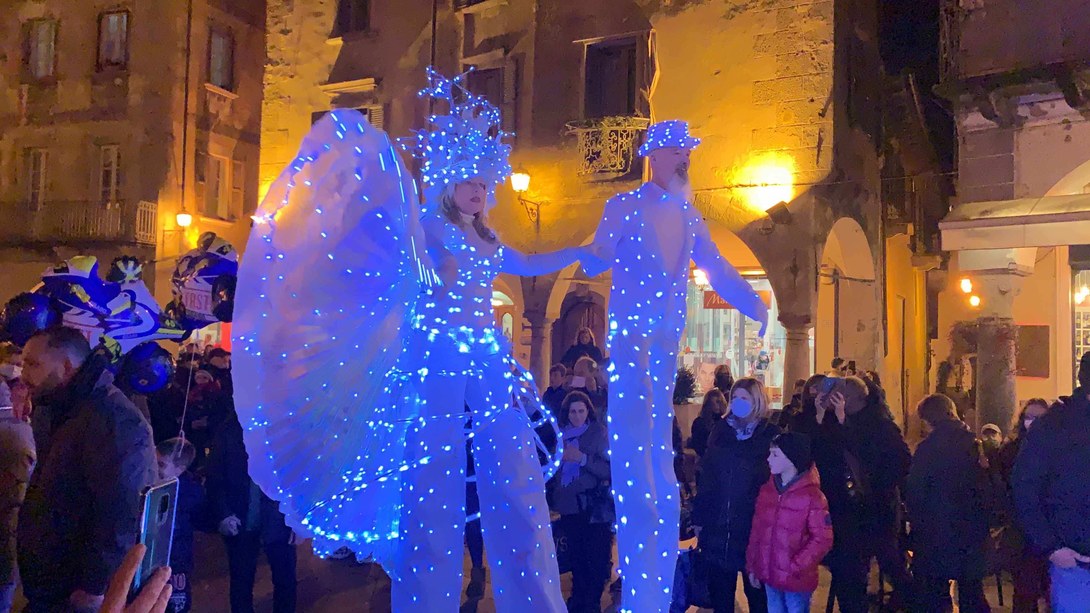 Prima dell'accensione si é svolto uno spettacolo dedicato ai bambini e voluto dall'amministrazione domese. Trampolieri, artisti di strada, giocolieri dello spettacolo Light Christmas e persino un Babbo Natale al quale i bimbi hanno consegnato le letterine dei desideri.