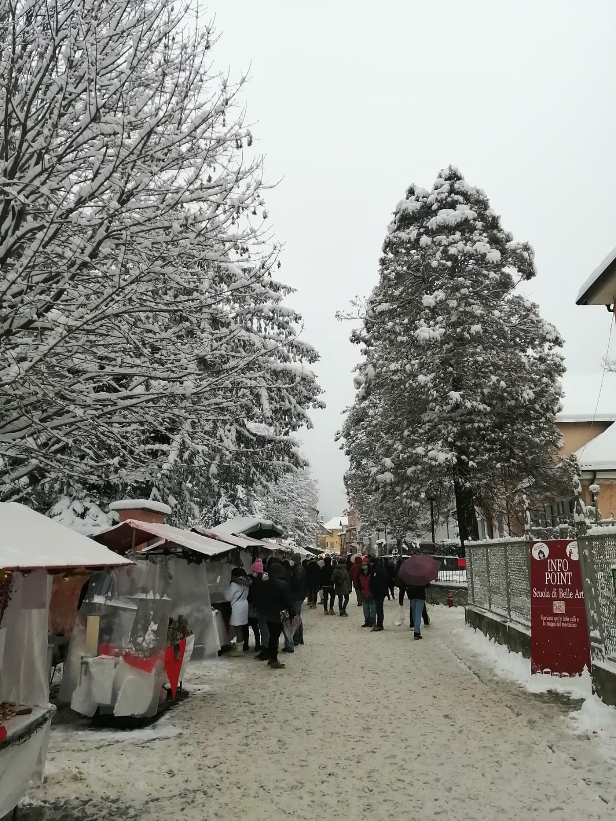 S.M.MAGGIORE- 08-12-2021-- Una fiaba natalizia i Mercatini di Santa Maria Maggiore che oggi si sono svolti sotto la nevicata. Un'atmosfera magica che ha coinvolto i numerosi turisti presenti e che รจ stata immortalata negli scatti di Niko Berini.