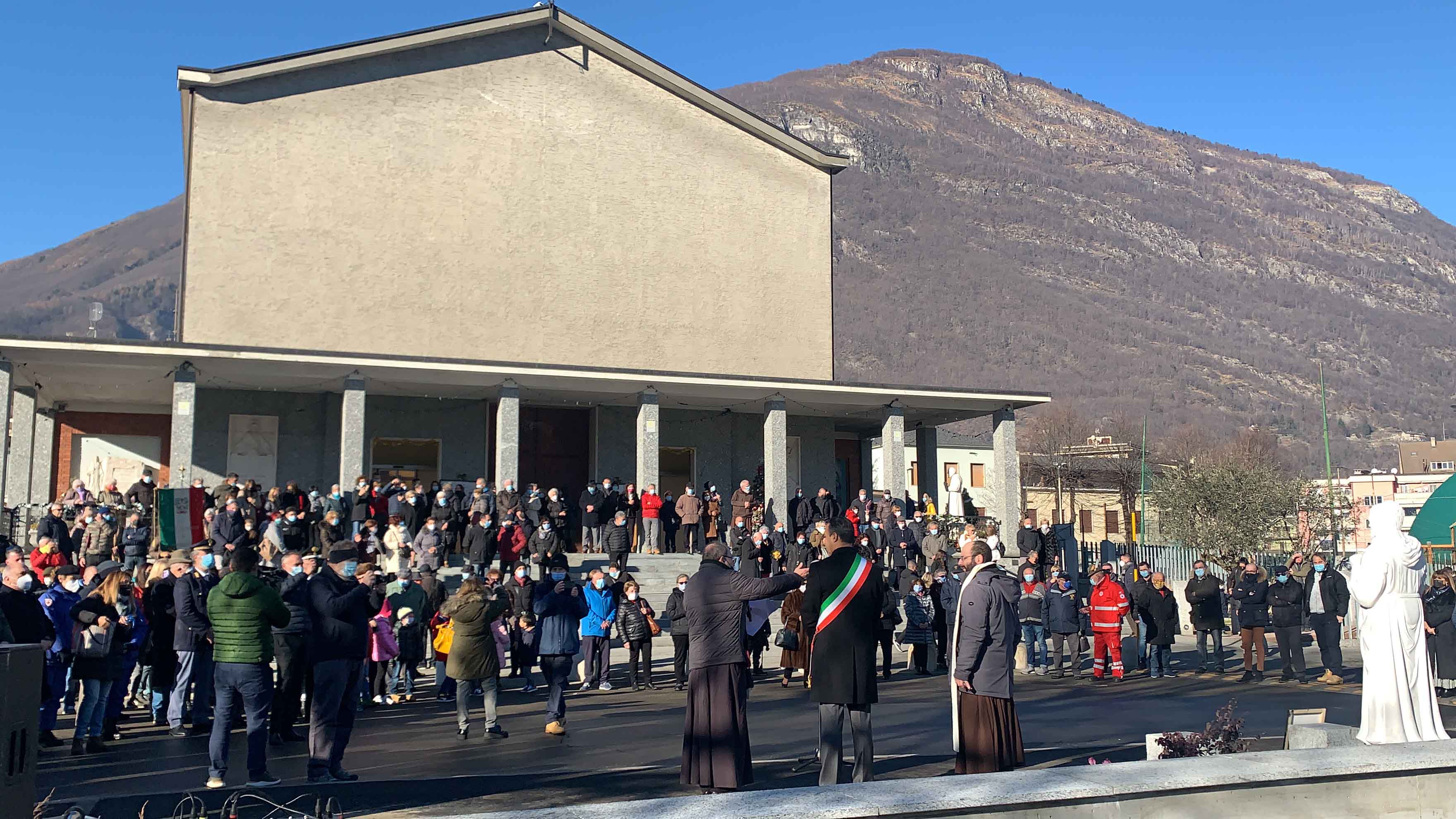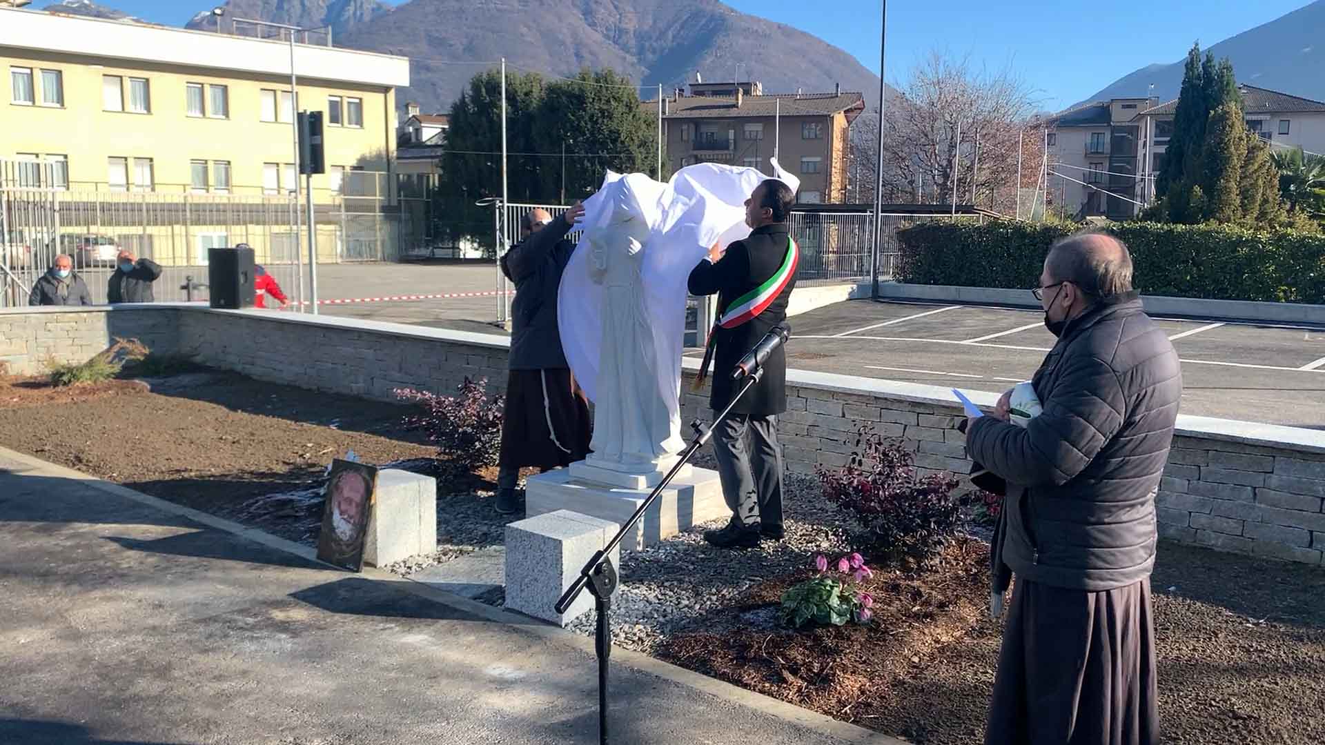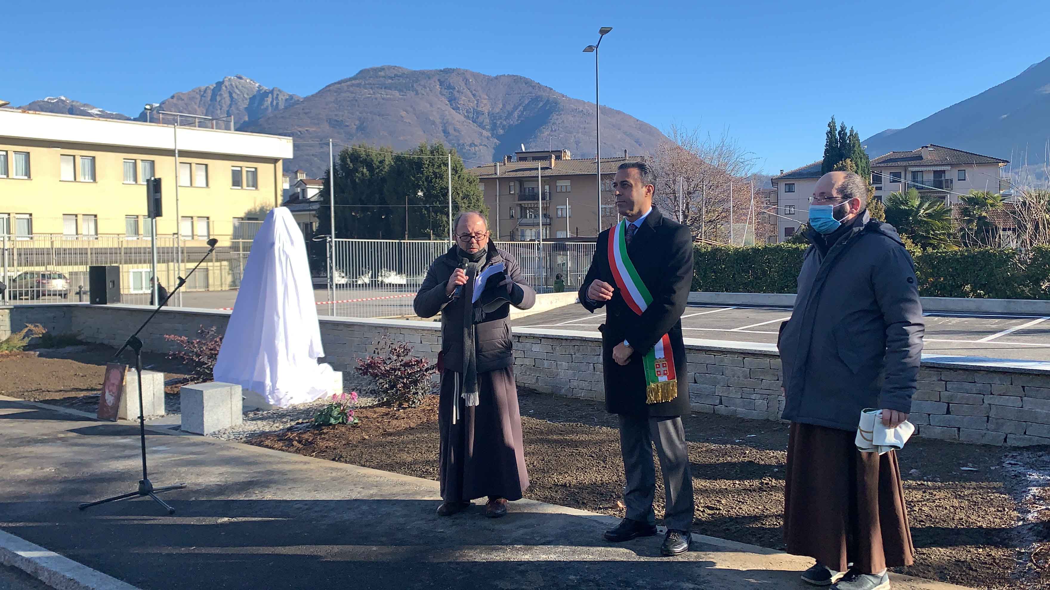 DOMODOSSOLA- 19-12-2021-- Partecipata inaugurazione stamane, dopo la messa, del parcheggio e della statua dedicata a Padre Michelangelo alla Cappuccina, nell'area antistante la chiesa. Durante la messa era stato ringraziato il pittore Sergio Bertinotti di Mergozzo, che ha donato i nuovi quadri della via Crucis appesi all’interno della Chiesa, al termine l’inaugurazione della statua e del parcheggio dedicato a padre Michelangelo, con il saluto del sindaco Lucio Pizzi, di padre Fausto e del vicario del Piemonte dei cappuccini padre Pierangelo Chiera.