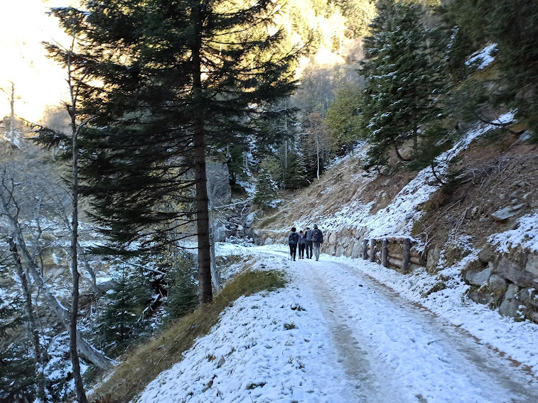 Anche in Val Cairasca queste piste fioriscono, come nel resto dell’Ossola, per far rinascere la montagna o, secondo altri, per farla morire del tutto, con l’aiuto delle centraline idroelettriche. Incontriamo la prima neve a quota 1350. La guida odierna ci consente un’andatura assolutamente tranquilla e, seguendo pista e sentiero, passiamo dall’Alpe Calaioni, 1447, e dal Rio Paris, arrivando all’Alpe Dorcia, 1559 (tre quarti d’ora da Torba).