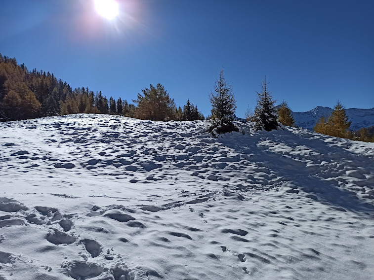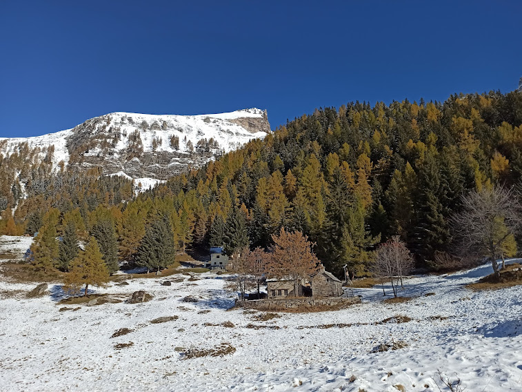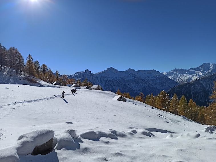 VAL DIVEDRO- 23-01-2022-- Finalmente un po’ di neve! In attesa che ne arrivi altra e che si assesti, guidati da un esperto locale, programmiamo un giro tranquillo fra gli alpeggi della Val Cairasca. Il bianco mantello, abbinato ai colori dell’autunno nello splendore del sole, crea paesaggi fiabeschi.