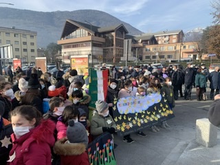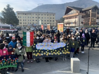 DOMODOSSOLA- 27-01-2022-- Sono stati i bambini delle scuole ed asili domesi i principali attori della celebrazione della Giornata della memoria, per commemorare le vittime dell'Olocausto nel giorno in cui, nel 1945, le truppe dell'Armata Rossa, liberarono il campo di concentramento di Auschwitz.