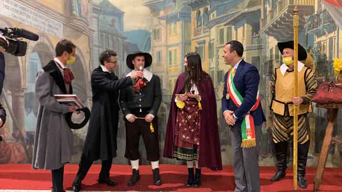 Questo pomeriggio a Palazzo San Francesco, all’ombra dell’antico sipario restaurato del Teatro Galletti che raffigura piazza Mercato, il sindaco Lucio Pizzi ha consegnato le chiavi della città al Togn e alla Cia.