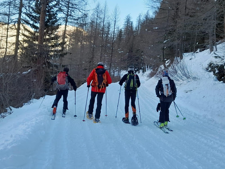 Cinque anziani, con la paziente signora che li accompagna e li sopporta, valicano il Passo del Sempione e scendono a parcheggiare a Rothwald, vicino al mitico e storico skilift ad ancora che, da ragazzi, li faceva letteralmente volare. La giornata è splendida, il freddo è un’altra cosa. La neve scarsa e senza un “fondo” adeguato fa prediligere le ciaspole anche ai fedelissimi degli sci, con l’eccezione di due rappresentanti dello sci alpinismo lacustre i quali, piuttosto che calzare le ciaspole, andrebbero a farsi una vacanza al mare.