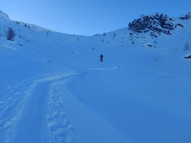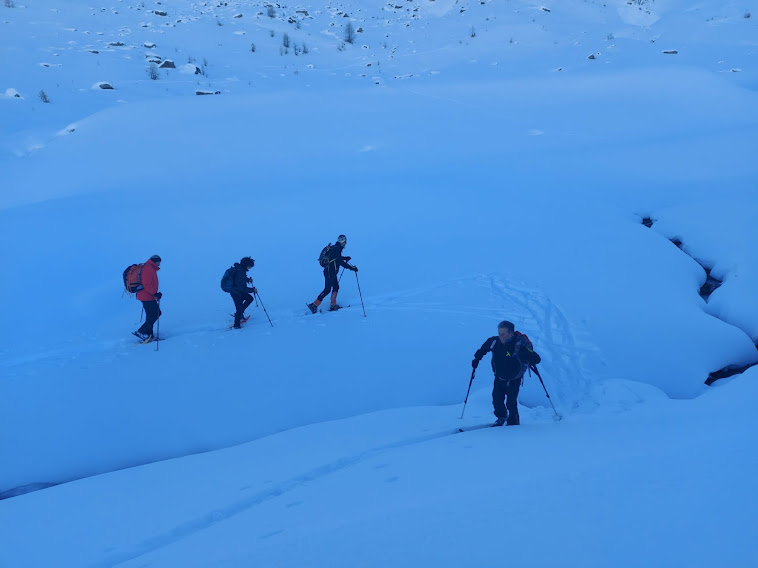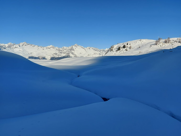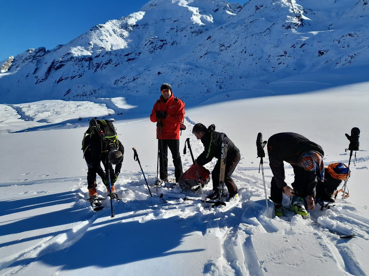 SEMPIONE- 27-02-2022-- C'è neve a sufficienza soltanto sopra i duemila metri, ma aldilà del Sempione. E poi il vento seguito alla prima nevicata decente dei giorni scorsi ha “spelato” il terreno, provocando anche accumuli instabili che consigliano grande prudenza. Andiamo quindi nel paradiso di Rothwald senza una meta ben precisa.