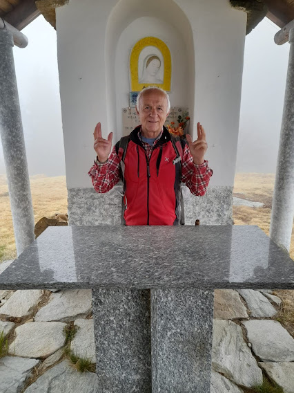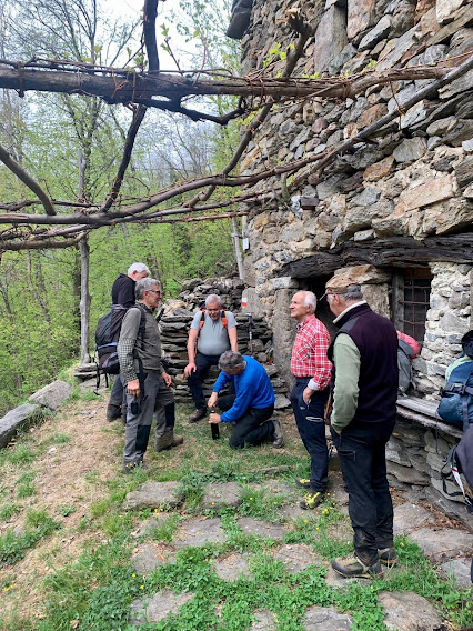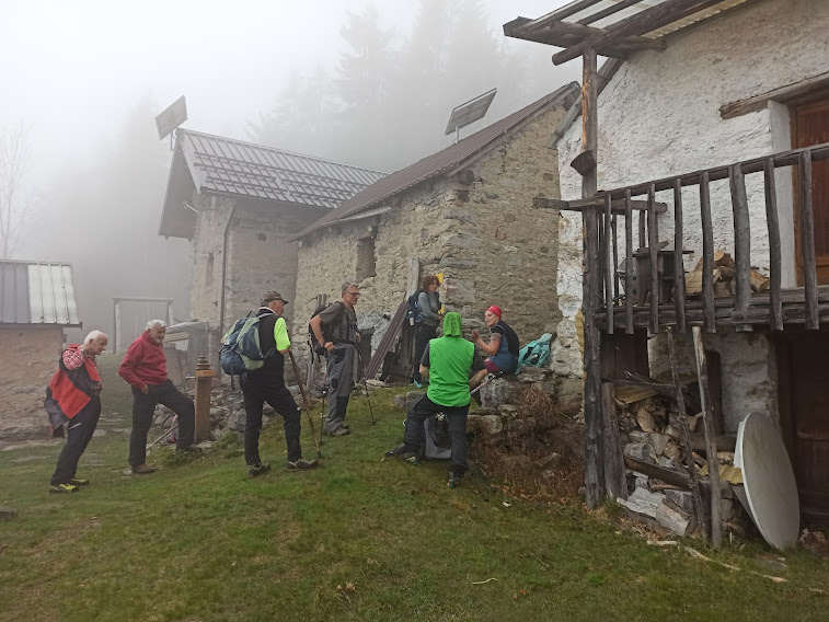 Previsioni negative e ombrelli negli zaini. La pioggia ci risparmierà, ma nella nebbia a quota 1400 ci si umidificherà comunque. Oggi lo schema è 5 – 1 – 1 – 2, cioè 5 anziani, medico di turno, rianimatore e doppia badante, ormai quasi indispensabile. La meta è l’Alpe Cavallo in Valle Antrona.