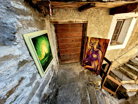 13-06-22--MONTESCHENO-- Giorgio Sartoretti, conosciuto come Giorgio da Valeggia, apprezzato artista recentemente scomparso, è stato ricordato domenica con una esposizione d'arte per le caratteristiche vie del borgo.