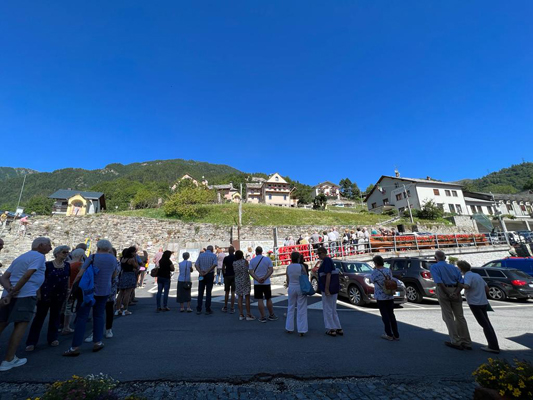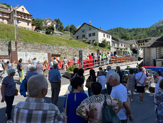 BOGNANCO- 31-07-2022-- È stata presentata stamattina a Bognanco San Lorenzo un'istallazione tratta da un'opera del pittore Renzo Foglietta. Nel bello scenario della valle il sindaco Mauro Valentini, alla presenza di un numeroso pubblico anche di turisti, ha inaugurato il Festival delle genti che vedrà svolgersi alcuni eventi durante tutto il mese di agosto.
