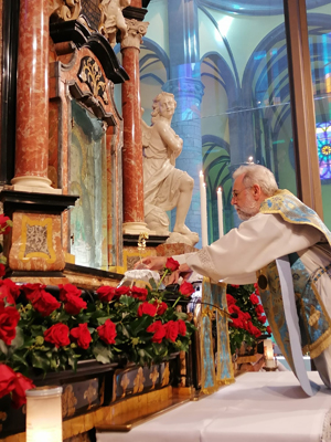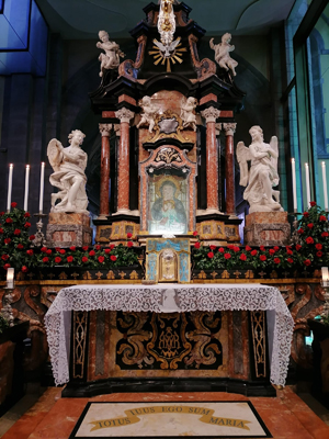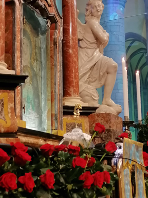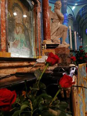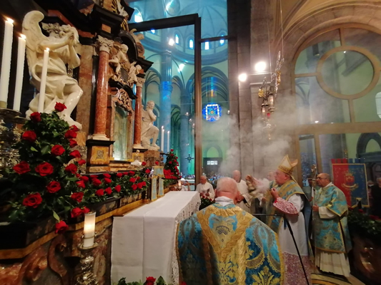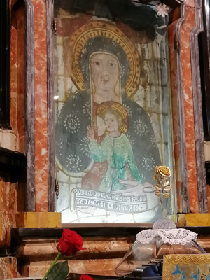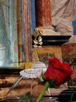 RE- 21-08-2022-- Una rosa d’oro, prezioso manufatto donato da un benefattore novarese, è stato deposto dal vescovo Brambilla nel corso di una solenne cerimonia, proprio davanti all'affresco di Maria e sarà visibile per alcuni giorni, dopo tornerà in cassaforte e sarà riportata davanti all'effige solo per le occasioni particolari.