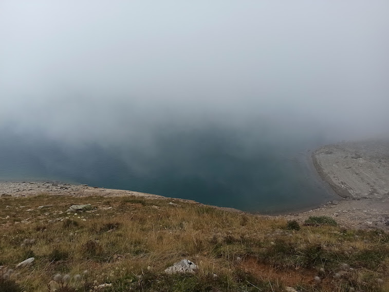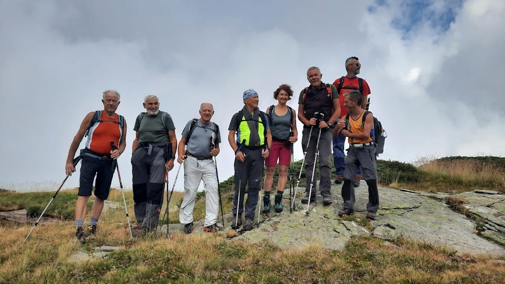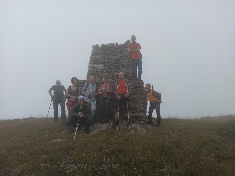 Sprazzi rari di sole, tante nuvole e nebbie vaganti, soprattutto sopra i duemila, ci accompagneranno durante l’escursione che è nuova per tutti, tranne che per il nostro presidente che ci farà da guida perché qui dà del tu anche ai sassi. Oltre a lui ci sono due signore, il medico di turno e cinque dipendenti INPS, uno dei quali sta soffrendo i postumi del Covid 19 e abbozza una lenta ripresa.