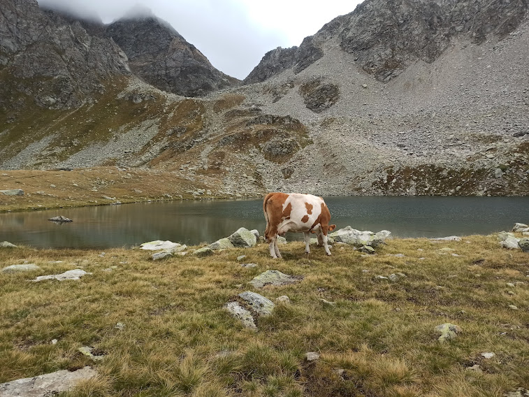 La bellezza del paesaggio, già di per sé idilliaco, è esaltata dai contrasti di luce creati da sole e nuvole che bisticciano nel cielo, aiutati da un venticello di settentrione che mantiene limpida l’aria e ci fa apprezzare una temperatura adatta alla fatica, dopo i bollori estivi. E poi ci sono tante vacche al pascolo che ci parlano di montagna vera. Nel confinante Canton Ticino, sui monti di Piotta, c’è una splendida escursione giustamente ribattezzata “Giro delle Meraviglie”, ma anche nell’Alta Formazza decine di laghi e laghetti ad altezze diverse fanno pensare a qualcosa di simile.