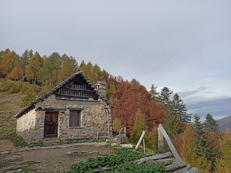 Il tempo incerto previsto nel pomeriggio ci ha indotti a scegliere un’escursione abbastanza breve. Parcheggiamo un’auto in zona pineta a Santa Maria Maggiore, dove i parcheggi “ufficiali” sembra siano a pagamento anche in un nuvoloso giorno infrasettimanale di ottobre inoltrato.