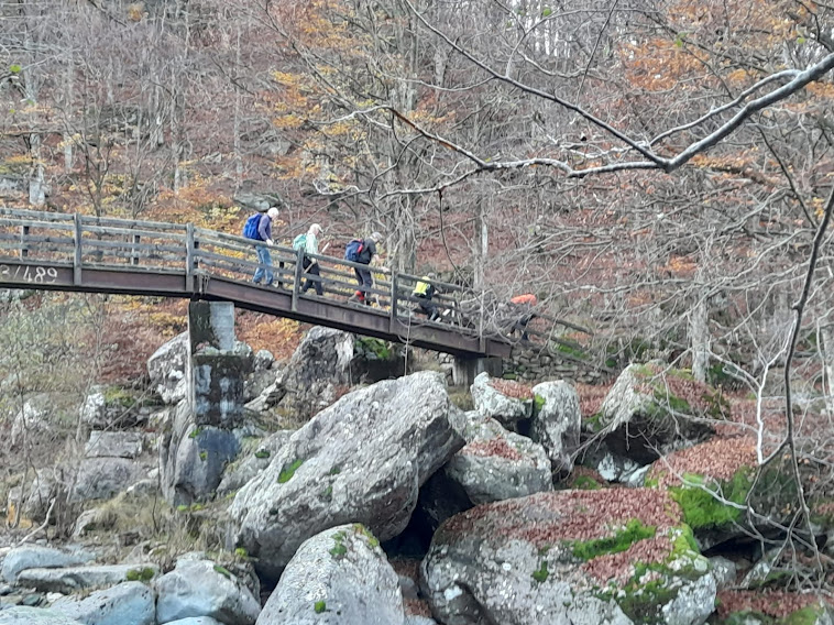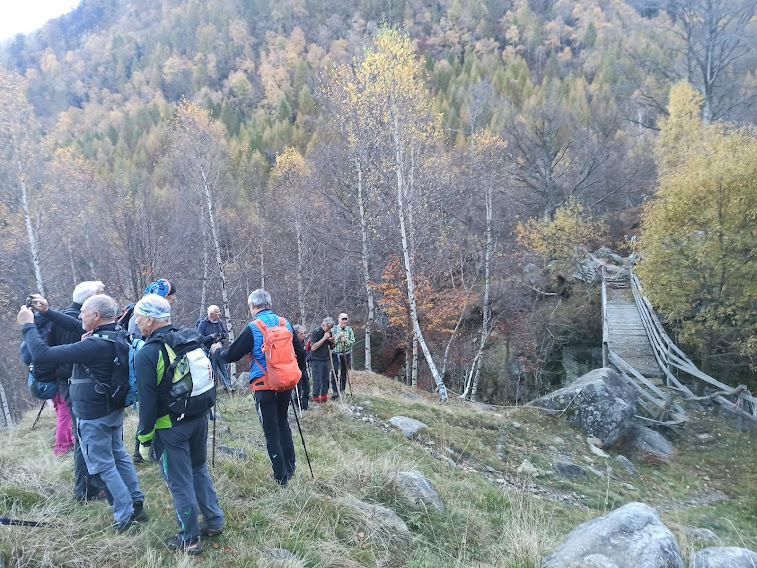 Il torneo proseguirà per tutta la giornata, anche in salita, senza effetti negativi per il fisico, ma con effetti positivi per lo spirito di tutto il gruppo. Passiamo dall’Alpe Crotte, dove ci saluta il pastore straniero che sta “scaricando” gli alpeggi, ed attraversiamo anche il ponte sull’ex Rio del Basso, affluente di sinistra del Loana. Qui tutto parla di centraline idroelettriche ed opere relative.
