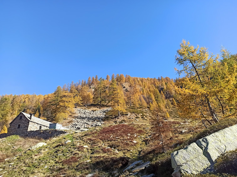 MALESCO- 04-12-2022-- Torniamo in Val Loana, incuriositi dalla Bocchetta di Vald, a molti ignota e che vedevamo di fronte a noi dalla Bocchetta di Cavalla due settimane fa. Il terreno scivoloso per l’umidità, perché il sole in questo periodo qui scarseggia, mette a dura prova la nostra attenzione. Mette invece a dura prova le nostre gambe la ripidissima salita dall’Alpe Bondolo alla Bocchetta di Cavalla. La Loana è la valle ossolana più prosciugata in assoluto dall’homo idroelettricus, dopo la Val Moriana, che lo è al cento per cento.