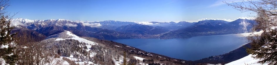 Con oltre un metro di neve fresca e pesante, può costituire un problema finire in un buco nascosto dalla neve, se non c’è una mano amica che ti aiuta, ma solo dopo averti accuratamente fotografato. Giovedì 6 febbraio la giornata è stupenda, un breve intervallo fra lunghi periodi di pioggia e neve. Meta sicura e tranquilla è il monte Carza, il più bel punto panoramico sul Lago Maggiore.