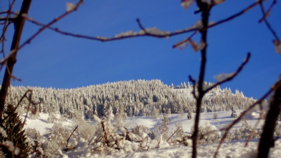 Fortunatamente conosciamo bene la zona ed abbiamo una guida con parenti Apaches, perché la segnaletica è in buona parte nascosta dall’altezza della neve. Oggi non c’è tempo per la colazione. Un sorso di tè e si prosegue, sempre arrancando nella neve alta, fino a Cima Forcola (1303), Monte Pian Bello (1325, il punto più alto dell’escursione) e Cima Ologno (1132), fra brevi salite e lunghe discese.