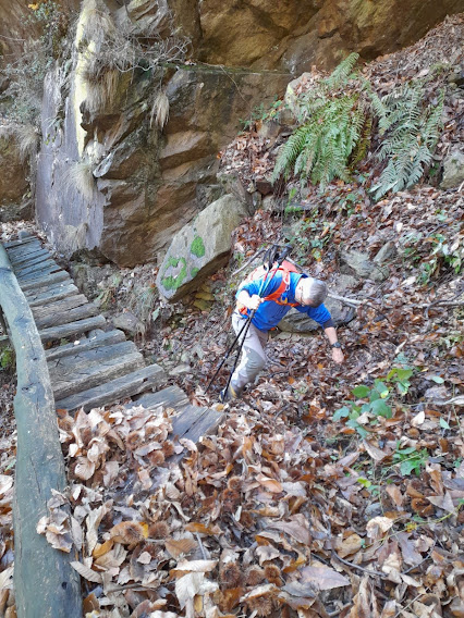 Parcheggiamo all’ingresso del paese, quota 729, e passiamo vicino al piccolo cimitero per andare a imboccare il sentiero R09 che entra subito nel bosco. Per tutta l’escursione cammineremo con attenzione, su terreno scivoloso e ricoperto di foglie, a volte impervio ed esposto. Ce la prendiamo inizialmente con calma, con pause di vario genere.