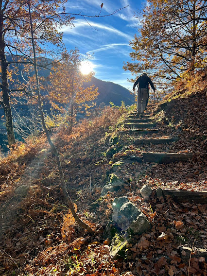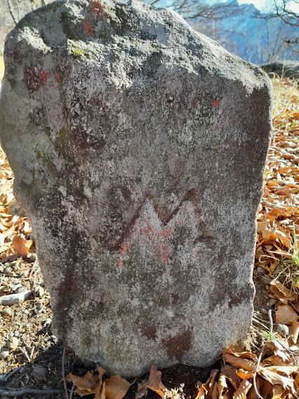 Seguono tratti pianeggianti alternati a brevi strappi con un unico tratto, sul versante dell’Isornino (nord), che richiede un po’ di attenzione. Incontriamo un cippo che segna, presumibilmente, il confine fra i comuni di Santa Maria Maggiore e Villette. A proposito, perché ce ne sono sette in pochi chilometri quadrati? L’esempio di Borgo Mezzavalle non è servito qui, come non è servito a Quarna Sotto e a Quarna Sopra e a tanti altri.