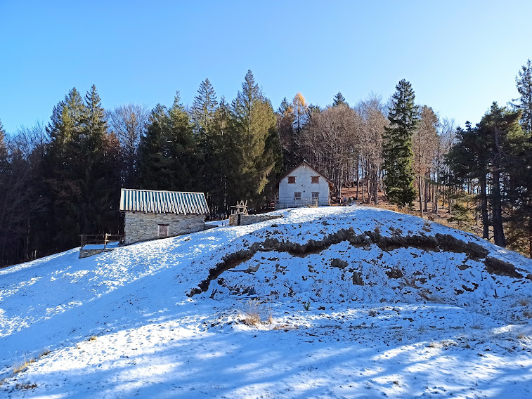 L’andatura è quella dei turisti doc. A quota 1410 tocchiamo il punto più elevato della Costa di Faedo. C’è un po’ di neve, qualche centimetro, nelle zone in ombra, ma alla fine di novembre, a queste quote, eravamo abituati a ben altro. Di fronte a noi, a nord e più basso, l’oratorio del Blitz.