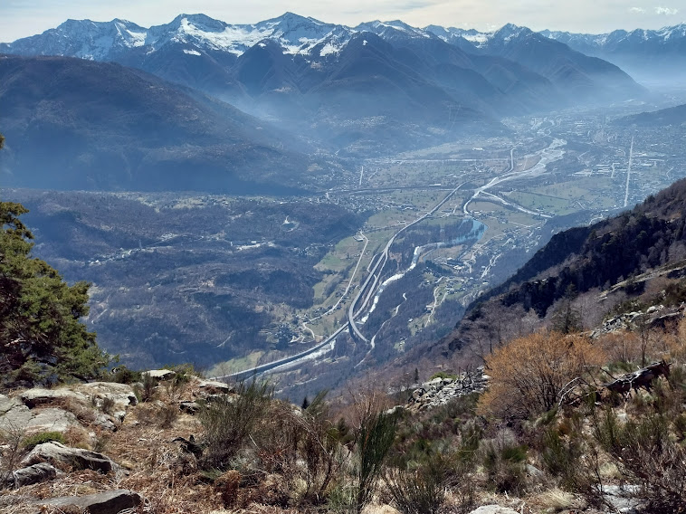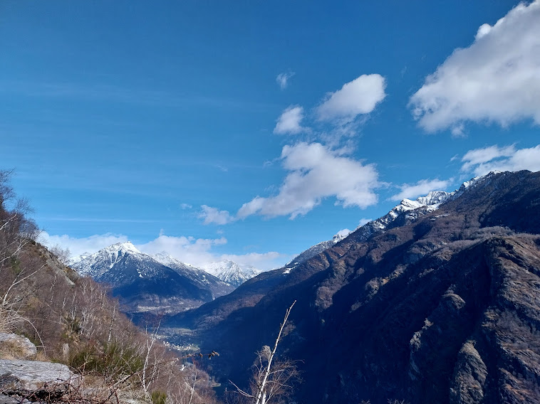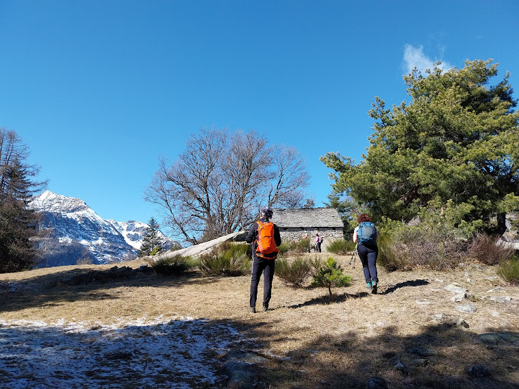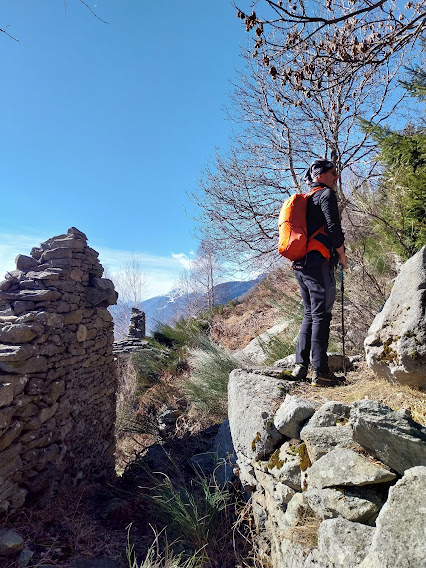 Su questo versante orientale della Colmine di Crevoladossola sono rimasti soltanto i ruderi di tante baite e i ricordi di una importante attività di alpeggio, non facilmente immaginabile. A quota 950 sostiamo brevemente, nei pressi di una piccola croce in ferro, dove si gode di un panorama superbo sull'Ossola. Dalle cartine non si capisce niente.