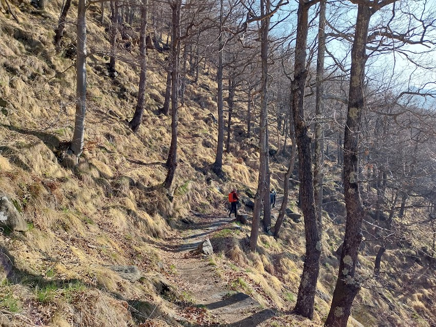 Siamo sul versante occidentale del Monte Torriggia e incontriamo esili tracce di neve. Passiamo in prossimità di Alpetta ed arriviamo sulla Costa di Torriggia, dove si trova il bivio per la vetta. Qui ci raggiunge la badante di sostegno con cui facciamo piacevolmente conoscenza e che prosegue con noi l’escursione.