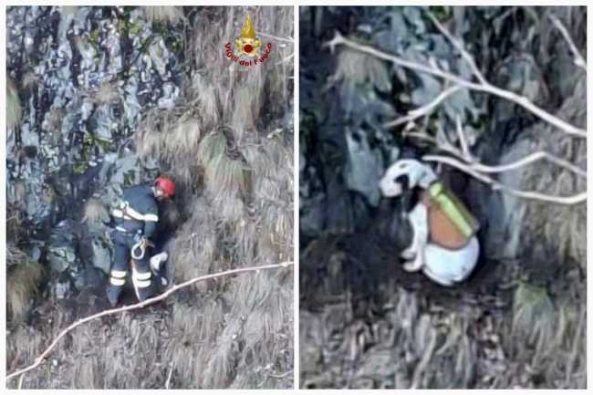 Cane in difficolta in una zona molto impervia, il segugio francese salvato dai Vvf