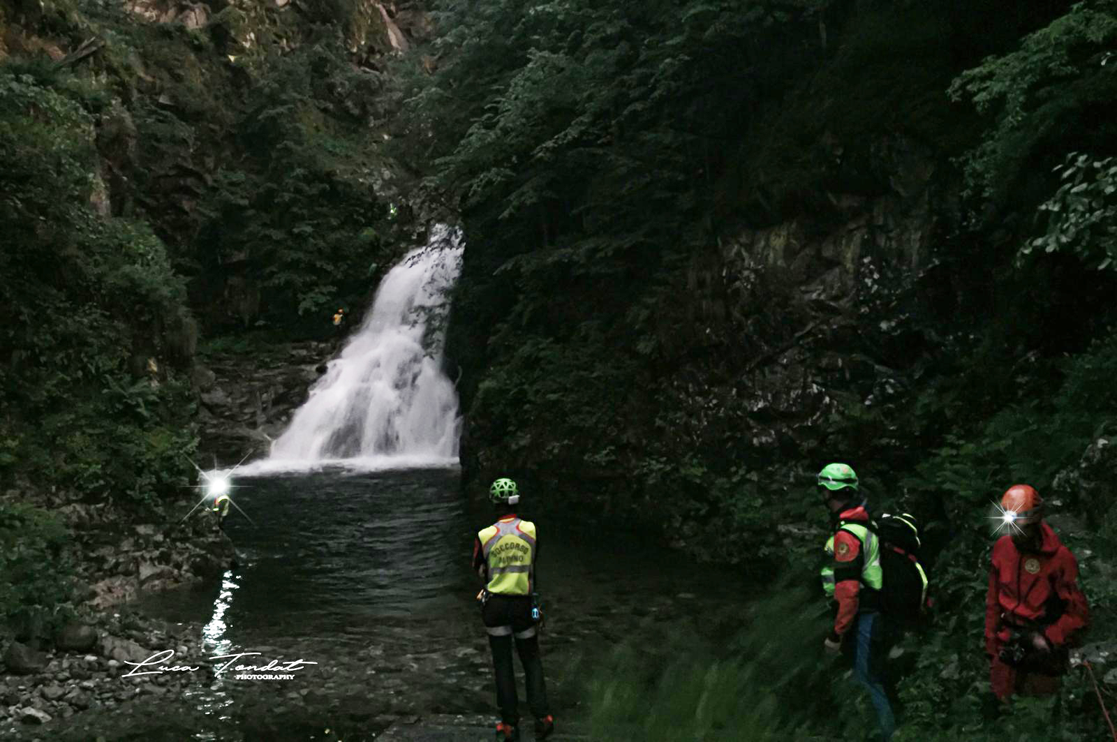 ANZASCA- 16-06-2019- Ecco le immagini fornite dal Soccorso alpino dell'intervento congiunto con la squadra forre dei Vigili del fuoco di sabato sera in Anzasca: "Quattro persone Italiane sono state evacuate dal Canyon in val Segnara - si spiega-di cui uno ferito ed elitrasportato al Cto di Torino per i traumi subiti.  Complessivamente hanno operato una trentina di tecnici, suddivisi tra Soccorso Alpino, Militari del Sagf e Vigili del fuoco. L'allarme è stato dato alle ore 18, al termine dell'intervento, lentamente le squadre di soccorso sono rientrate a piedi".