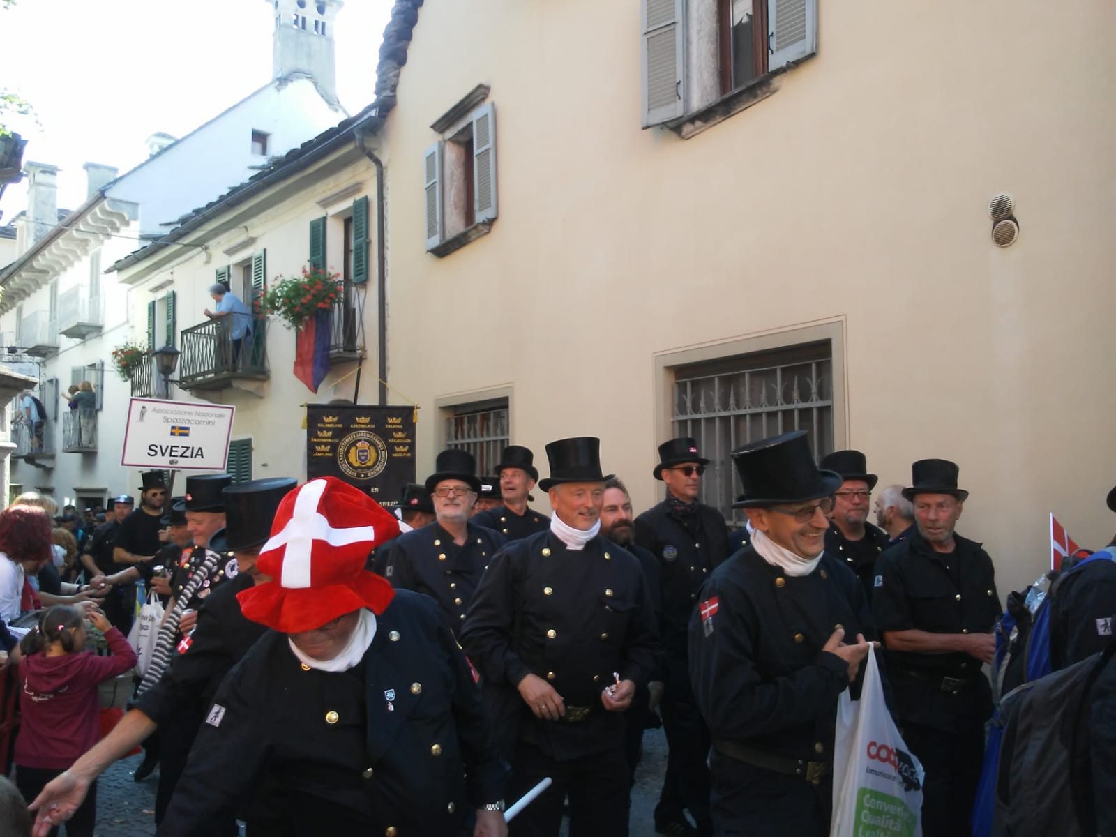 da tutto il mondo hanno sfilato domenica mattina per il centro di Santa Maria Maggiore, in occasione del trentottesimo raduno internazionale degli spazzacamini. Davanti alle autorità e ad un pubblico di decine di migliaia di persone i " rusca" hanno rallegrato la prima domenica di settembre portando simpatia e distribuendo caramelle a grandi e piccini. "23 le nazioni rappresentate dai musi neri, alcune delegazioni delle quali come l' Austria, la Finlandia e la Svezia sono cresciute a livello di partecipazione" spiega Anita Hofer vice presidente dell' Associazione Nazionale Spazzacamini, presieduta da Livio Milani, in testa al corteo aperto dal Gruppo Folkloristico Valle Vigezzo che compie quest'anno 98 anni. Il gruppo più numeroso la Germania con oltre quattrocento partecipanti. Tra le novità anche il passaggio di un aereo nei cieli sopra il borgo che ha raccolto lo stupefatto applauso degli intervenuti. " Anche quest'anno è motivo di grande orgoglio rivedere tutti i paesi del mondo rivolgere un loro ritorno al paese d' origine " aggiunge Claudio Cottini, sindaco del comune vigezzino. Bilancio come ogni anno entusiasmante con i ristoranti, alberghi e bed and breakfast al completo e domani gita degli spazzacamini a Stresa scelta quest'anno come location per i saluti finali tra i partecipanti.