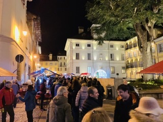 di Natale di Domodossola, giunti alal 22^ edizione. sabato mattina sono stati tanti gli svizzeri che hanno apprezzato le merci esposte sulle 150 bancarelle dal tetto rosso, di cui 30 al "debutto" nel mercatino del capologo ossolano. Per tutta domenica, sino alle ore 19, saranno presenti le bancarelle, i punti di ristoro e l'animazione con le cornamuse. In collegiata in serata il concerto degli ottoni del teatro di Milano alle ore 21.