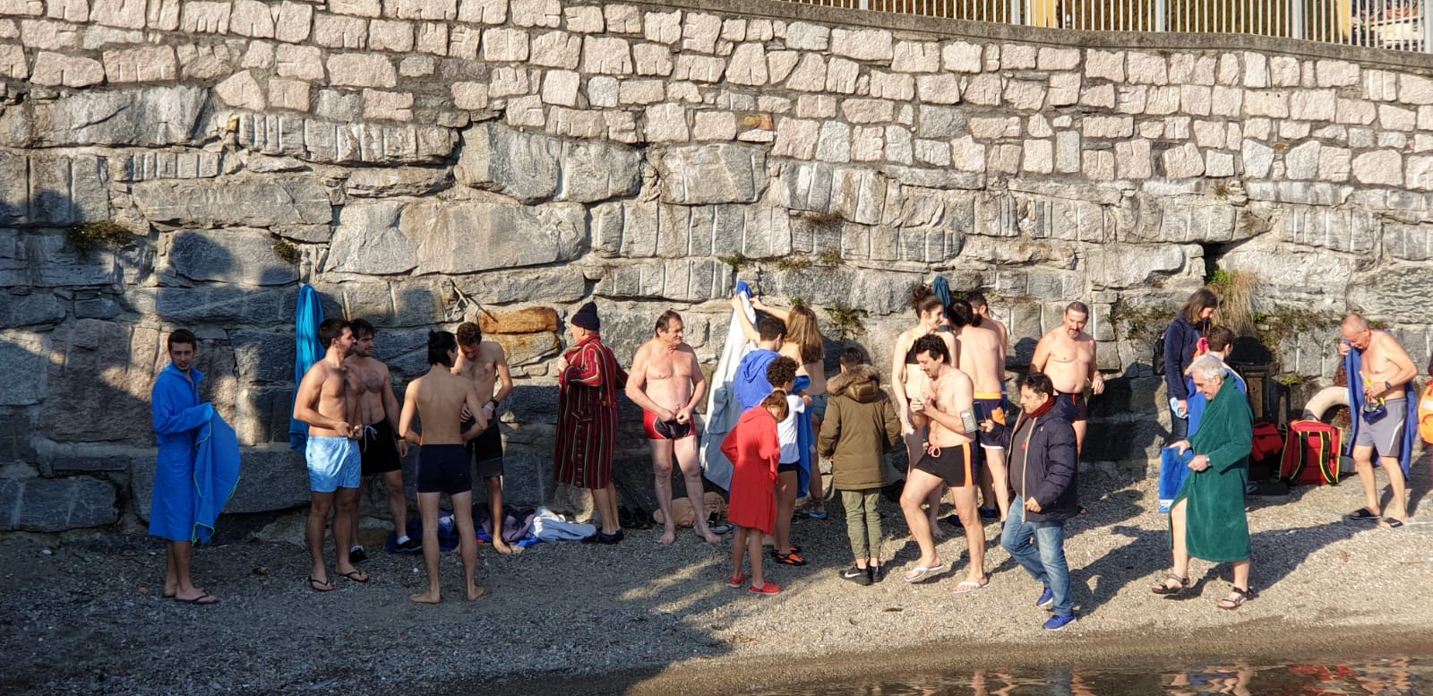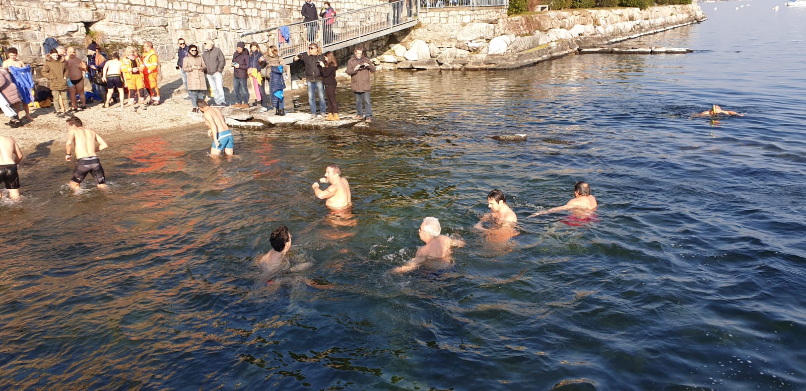 superava di poco i 7°, quello dell’aria arrivava a 11. Sono queste le condizioni atmosferiche –in una giornata di bel sole– che hanno accolto oggi a Ghiffa i 22 temerari che hanno scelto un tuffo nel Lago Maggiore per salutare l’Epifania e chiudere le feste. Il cimento numero diciassette organizzato dalla Pro Ghiffa ha avuto un numero di iscritti superiore a quello dell’anno passato, quando furono 16 a presentarsi alle 12,30 nella spiaggetta della darsena Baj, davanti alla chiesa di Santa Croce.
