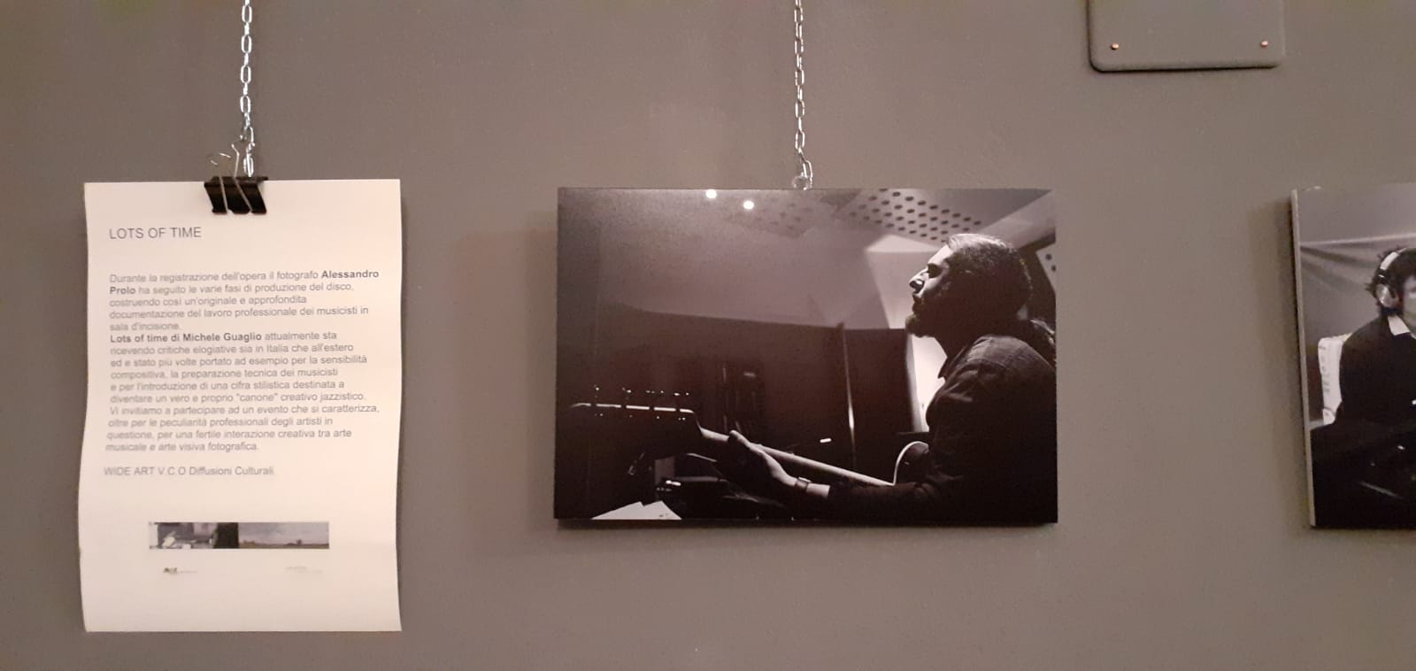 " Michele mi ha chiamato per documentare il suo primo lavoro da solista. Le mie fotografie sono al 99 per cento in bianco e nero, si tratta di una scelta personale, innanzitutto di gusto" spiega l' autore degli scatti. Il disco " Lots of Time" contiene dieci tracce che riguardano un lavoro durato circa tre anni. " Sono brani che raccontano storie, alcune musiche sono state composte pensando ad immagini " spiega Michele Guaglio. Il disco uscito a settembre del 2019 è nella classifica iTunes del Jazz in Germania. Una bella soddisfazione per l'artista ossolano , musicista di grande talento e di raffinata preparazione accademica con gli studi compiuti al Conservatorio, fondatore dell'Associazione Make Music (insieme a Marco Cassone e Marco Laurini ) e protagonista di esibizioni al fianco di mostri sacri come James Brown. La mostra rimarrà aperta al pubblico fino al 22 febbraio durante gli orari di apertura del Caffè Rosmini.