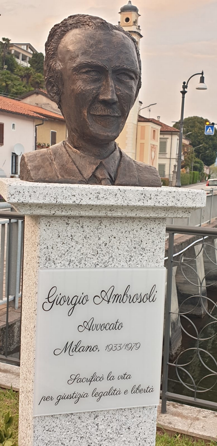 rivolto verso Milano. È questa l’immagine che trasmette il busto di Giorgio Ambrosoli, la statua che il comune di Ghiffa -che già gli aveva intitolato il lungolago- ha inaugurato ieri come omaggio all’avvocato assassinato quarantuno anni fa a Milano. La tragica vicenda del liquidatore della Banca privata italiana, che tenne la schiena dritta non piegandosi agli interessi della malavita e della massoneria (il mandante del suo omicidio fu il banchiere Michele Sindona) e non venendo meno ai suoi doveri, è una fonte di ispirazione ancora oggi per molti.