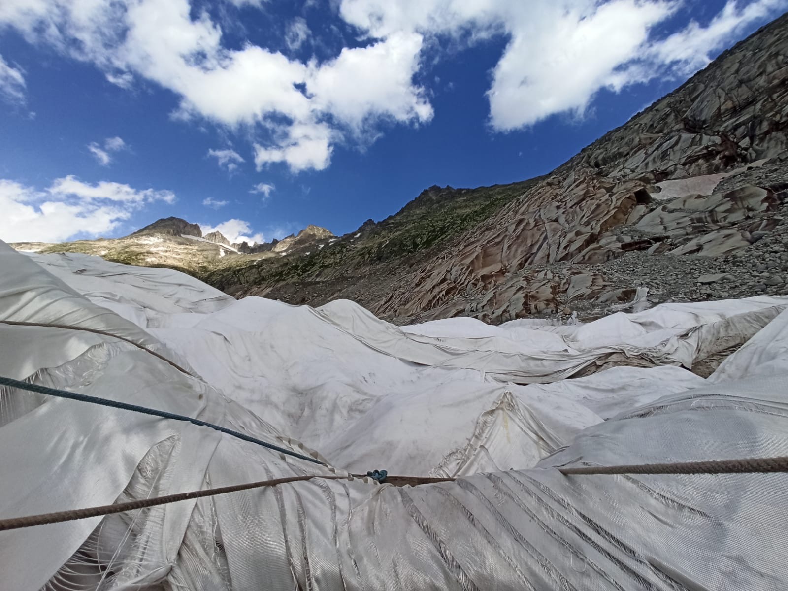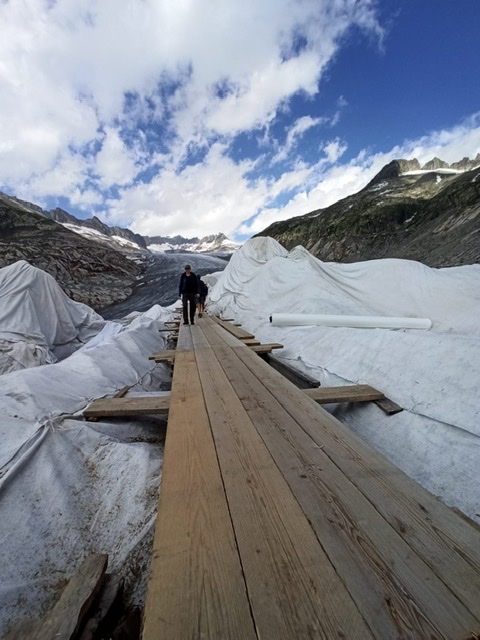Se la temperatura rimarrà su questo trend di innalzamento, delle grotte potrebbero rimanere soltanto un ricordo. Sono calde le giornate estive, anche a 2400 metri di quota. Le lingue glaciali lunghe chilometri che scendevano fino a "Gletsch" sono solo un ricordo. In duecento anni il ghiacciaio ha perso chilometri di lunghezza. Ma la speranza è sempre l'ultima a morire, e le intraprendenti maestranze elvetiche sono qui a dimostrarlo, con telo sul bianco, della neve.