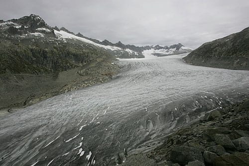 Ghiaccio che ora si fa fatica a intravedere dalle stesse prospettive, lungo l'arteria principale che collega il canton Vallese con il canton Uri. Per poter osservare la rimanenza della lingua glaciale bisogna addentrarsi nella valle da esso scavata nei millenni, un immenso bacino di ghiacci e acqua che dà vita all'omonimo fiume, uno dei più imponenti d'Europa. Prende vita da questo massiccio alpino, insieme al Reno, altro enorme fiume nordico, poco distante.