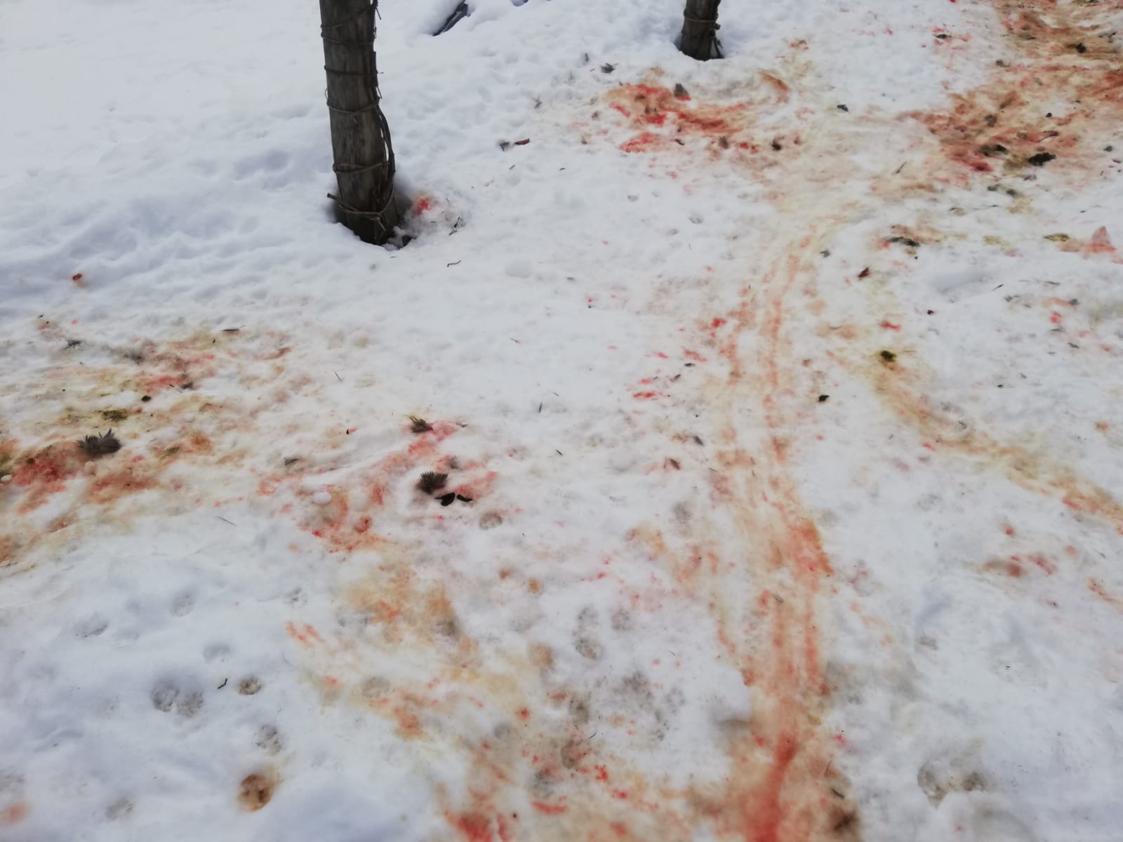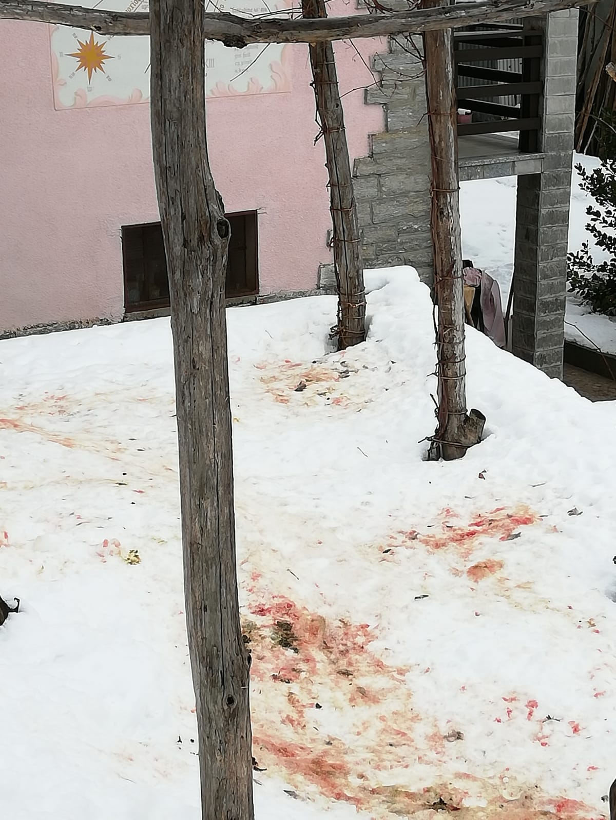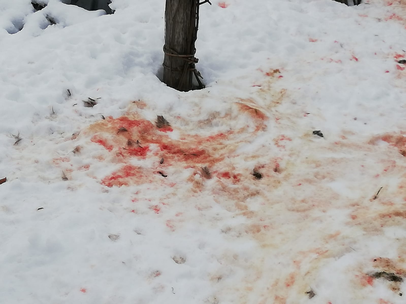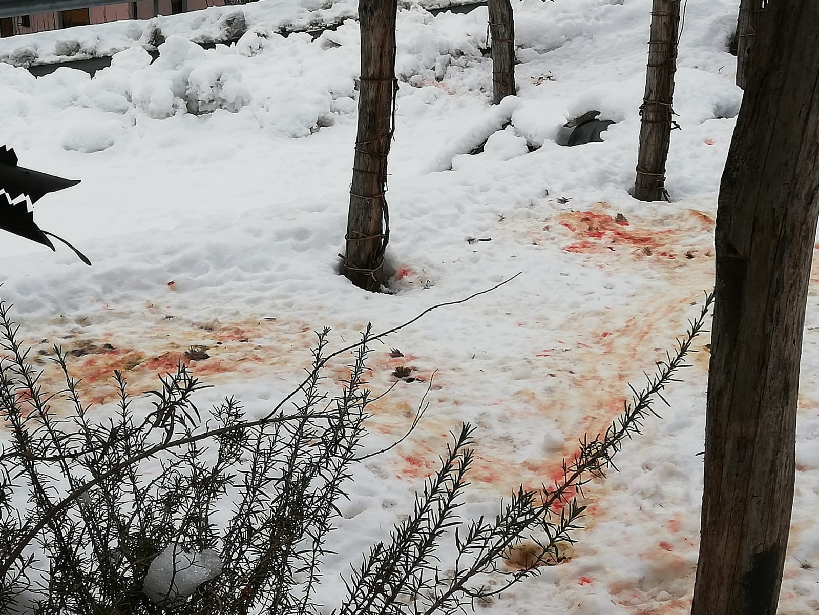 E' successo la scorsa notte a Viganella, nei pressi dell'abitazione di Pierfranco Midali, ex sindaco e presidente dell'Associazione produttori agricoli ossolani, che ha avvisato la polizia provinciale per le indagini del caso: "Stamane quando ho aperto la porta d'ingresso ho visto un'enorme macchia di sangue- spiega- eppure questa notte non abbiamo sentito niente.