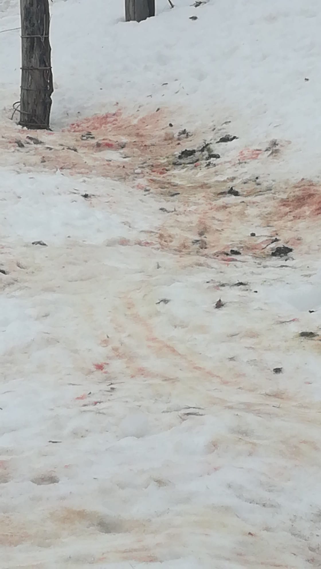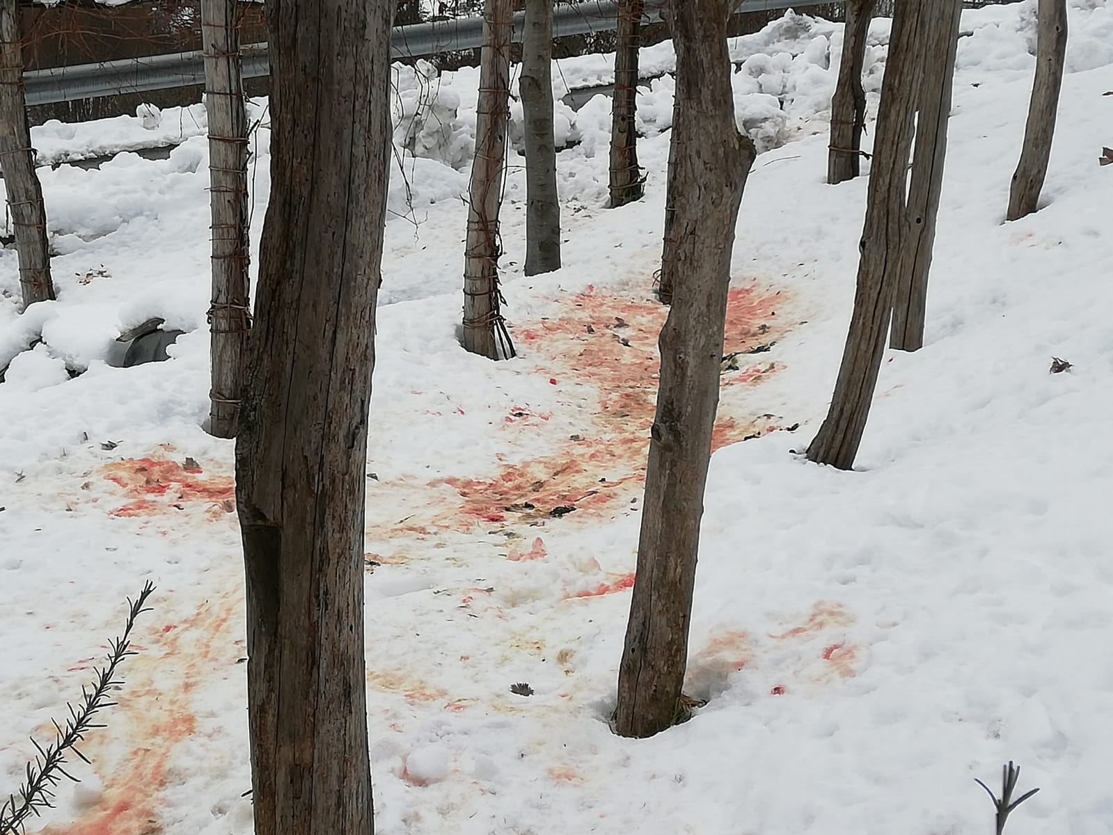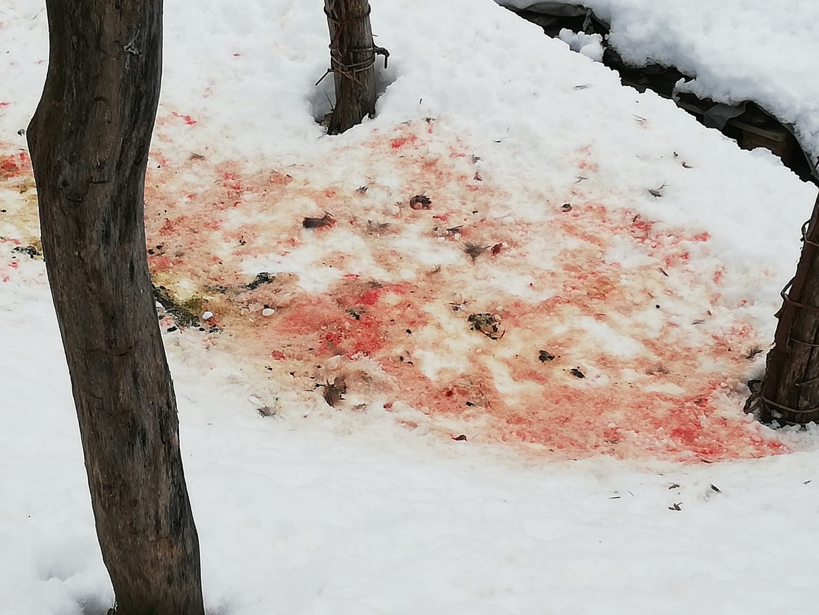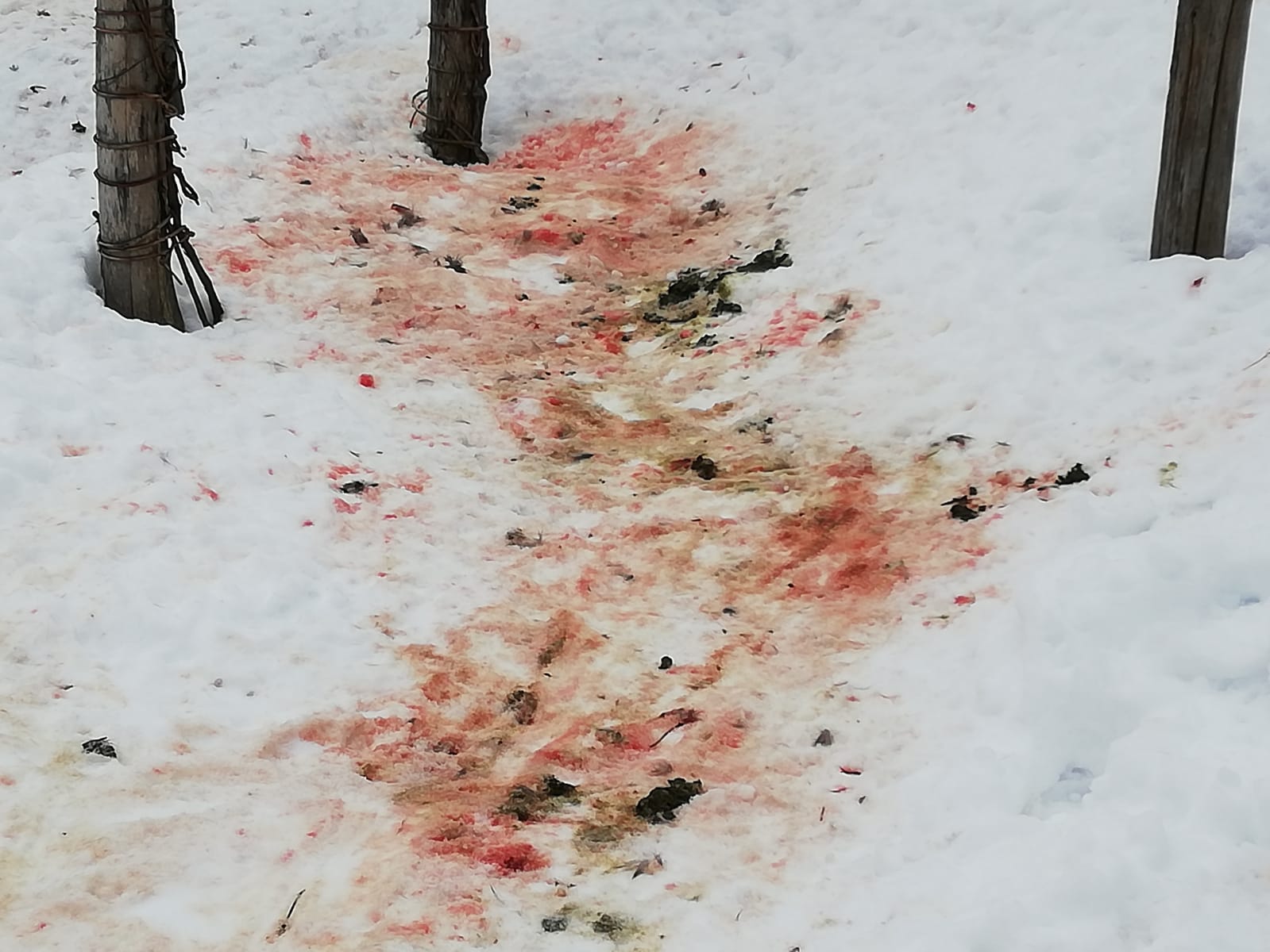 E' successo la scorsa notte a Viganella, nei pressi dell'abitazione di Pierfranco Midali, ex sindaco e presidente dell'Associazione produttori agricoli ossolani, che ha avvisato la polizia provinciale per le indagini del caso: "Stamane quando ho aperto la porta d'ingresso ho visto un'enorme macchia di sangue- spiega- eppure questa notte non abbiamo sentito niente.