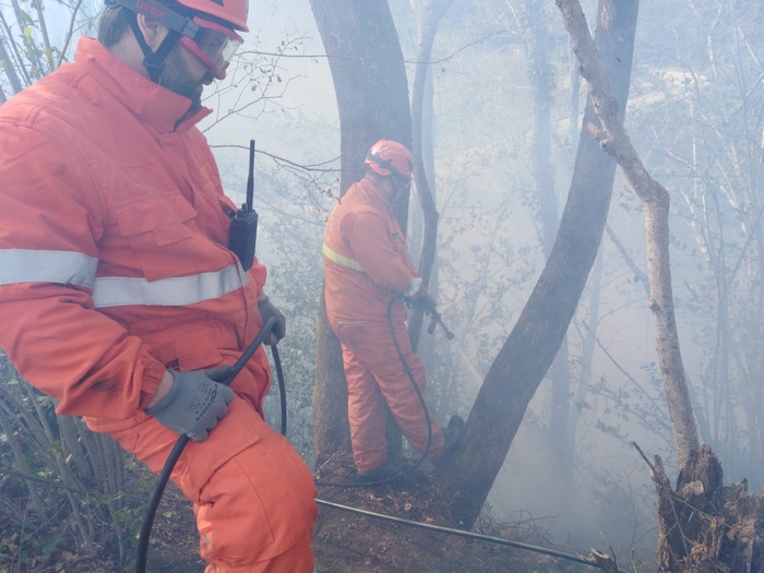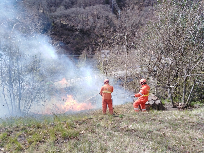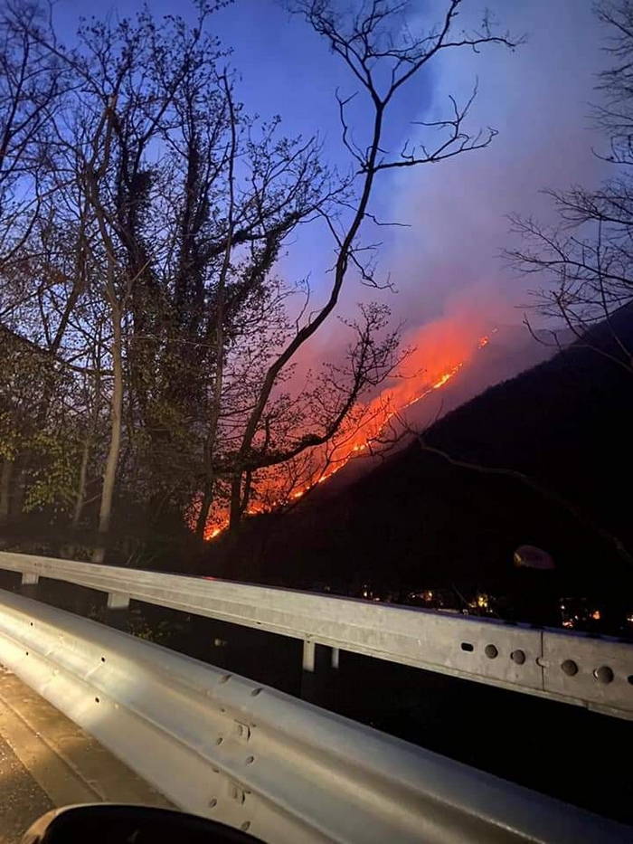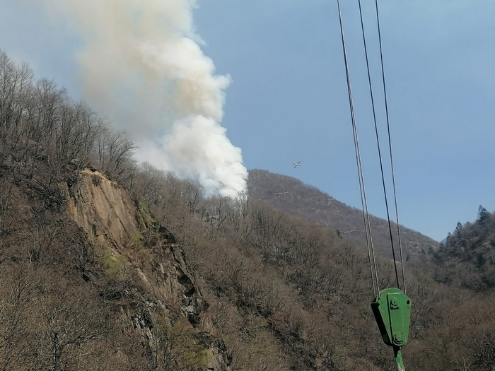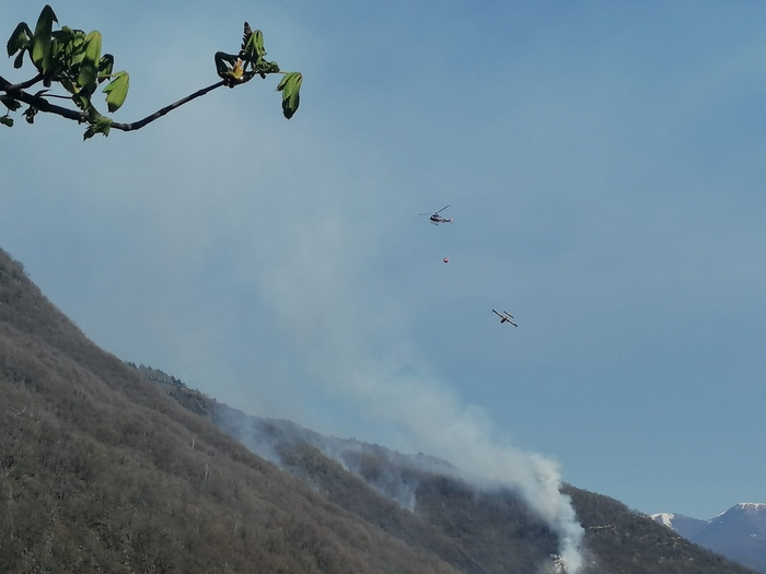VALLE CANNOBINA - 09-04-2021 -- I focolai sono sotto controllo, ma l’emergenza non può dirsi superata. Le fiamme che da tre giorni avvolgono i boschi della bassa Valle Cannobina hanno interessato un’area di circa un centinaio di ettari arrivando sino al monte Giove, la vetta che domina sull’abitato di Cannobio. Per tutta la giornata di ieri intenso è stato il lavoro di vigili del fuoco e volontari Aib, presenti con circa un centinaio di uomini, a supporto dei quali sono giunti tre Canadair e due elicotteri antincendio. I primi hanno fatto la spola tra il lago e i monti, i secondi hanno scaricato in continuazione l’acqua prelevata dalla vasca d’accumulo allestita a Cavaglio. Ciò ha permesso di smorzare i diversi focolai che si sono propagati in più direzioni grazie soprattutto al forte vento che ancora ieri spirava sull’alto Verbano.