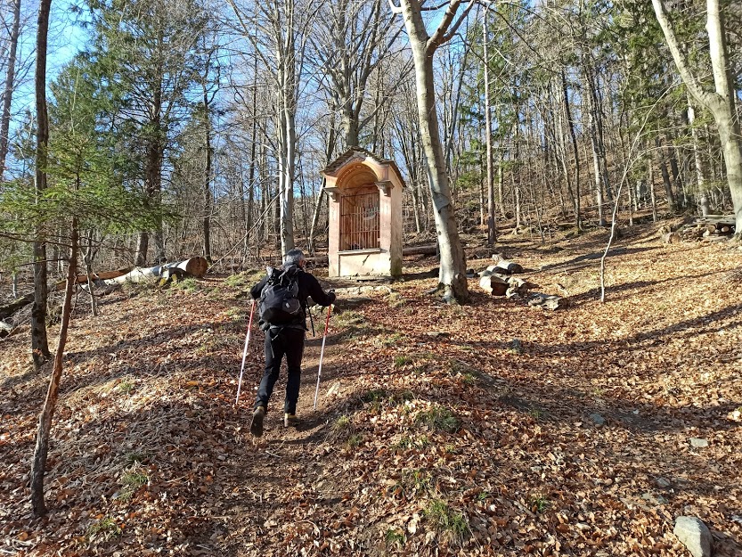 Camminiamo adesso su tanta neve compatta che ci fa pensare alle bellissime sciate in pista che ci siamo persi per colpa del virus maledetto e delle scelte di una politica poco informata in quel di Roma. Seguiamo comodamente la strada per Torcelli, senza bisogno di ciaspole o ramponcini, e, poco prima dell’Alpe, a quota 1400 circa, troviamo il bivio per l’Alpe Casale. Si scende velocemente nel bosco, con neve buona fino a quota 1200 e poi sul sentiero evidente fino ai ruderi dell’Alpe Casale, 1135. A Cascina Vè, 996, c’è un bellissimo chalet in costruzione ed arriva una strada. Niente di strano. Nel bel bosco di faggi arriviamo a Bei, 741, dove ci sfamiamo. Circa due ore dal Lusentino.