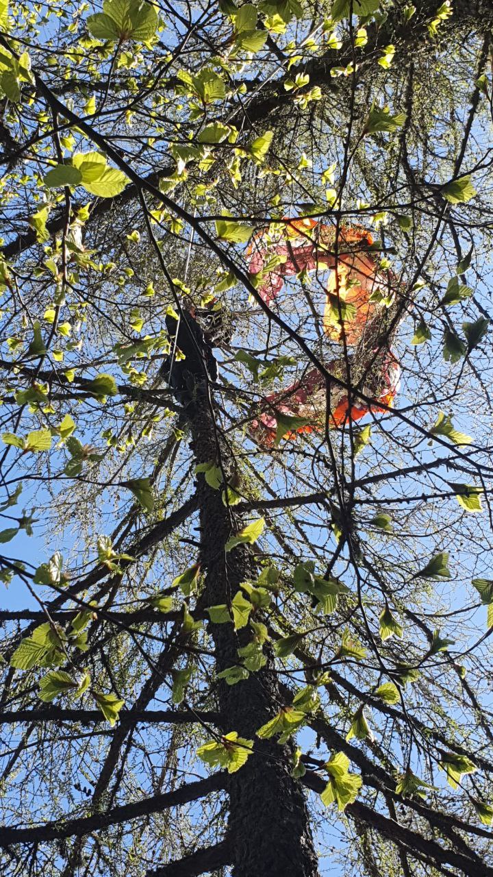 Il pilota del parapendio per motivi imprecisati ha urtato la cima di un albero subito dopo il decollo ed è rimasto appeso con la vela ad un’altezza di circa 20 metri.