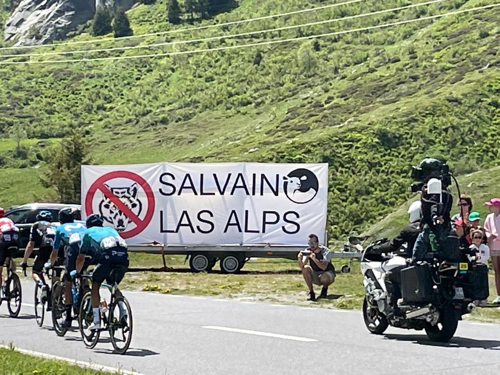 Associazione grigionese per la protezione del territorio dai grandi predatori e Komitee Pro alpine Kulturlandschaft. Prosegue la nota: "Lungo il percorso nei cantoni Ticino, Vallese, Uri e Grigioni abbiamo reso attenti sulla nostra preoccupazione con lo slogan 'Save the Alps - Retten wir die Alpen - Salvain las Alps - Salviamo le Alpi' e con striscioni.