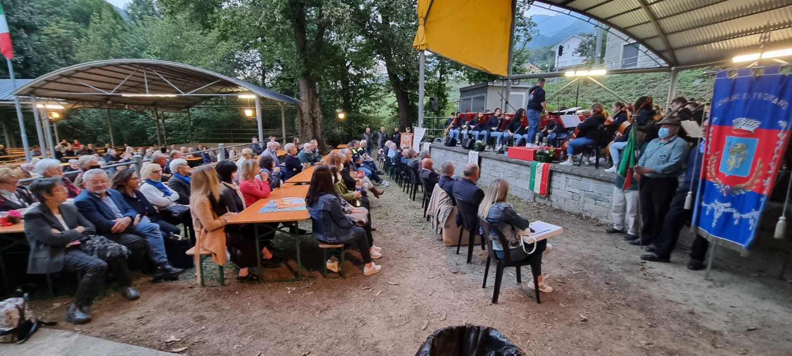 L'area attrezzata dove si svolge la Sagra del Fungo è stata il palcoscenico che ha permesso di rispettare le norme covid ed al contempo di permettere a tutta la popolazione di partecipare alle cerimonia a partire dalla tarda serata, con l'esibizione della Gmo, e poi con i discorsi ufficial e la consegna da parte del sindaco Renzo Viscardi della cittadinanza onoraria al cardiochirurgo noto in tutto il mondo e primario del reparto di cardiologia dell'ospedale di Alessandria, ma originario della frazione di Cosasca, dove ancora vivono i genitori: